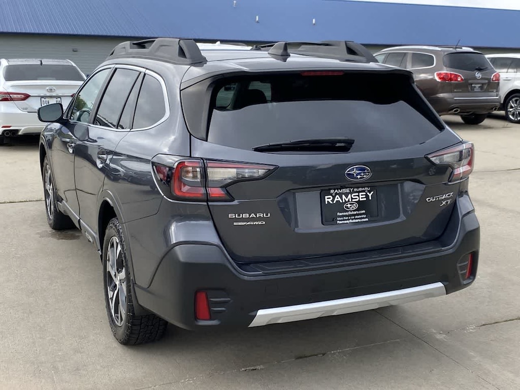 Outback Limited XT is nicely equipped with Standard Model, Subaru Certified Pre-Owned Certified, 12 Speakers, 4-Wheel Disc Brakes, 4.111 Axle Ratio, ABS brakes, Air Conditioning, All-Weather Floor Liners, Alloy wheels, AM/FM radio: SiriusXM, Auto High-beam Headlights, Auto-dimming Rear-View mirror, Automatic temperature control, Brake assist, Bumpers: body-color, Compass, Driver door bin, Driver vanity mirror, Dual front impact airbags, Dual front side impact airbags, Electronic Stability Control, Emergency communication system: STARLINK Safety and Security (Subscription Required), Exterior Parking Camera Rear, Four wheel independent suspension, Front anti-roll bar, Front Bucket Seats, Front Center Armrest w/Storage, Front dual zone A/C, Front fog lights, Front reading lights, Fully automatic headlights, Garage door transmitter: HomeLink, harman/kardon Surround Sound Speaker System, harman/kardonî Speakers, Heated door mirrors, Heated Front Bucket Seats, Heated front seats, Heated rear seats, Heated steering wheel, HVAC memory, Illuminated entry, Knee airbag, Leather steering wheel, Low tire pressure warning, Magnetite Gray Metallic Door Edge Guards, Memory seat, Navigation System, Occupant sensing airbag, Outside temperature display, Overhead airbag, Overhead console, Panic alarm, Passenger door bin, Passenger vanity mirror, Perforated Leather-Trimmed Upholstery, Power door mirrors, Power driver seat, Power Liftgate, Power moonroof, Power passenger seat, Power steering, Power windows, Radio: Subaru STARLINK 11.6 Multimedia Nav System, Rear anti-roll bar, Rear Bumper Cover, Rear Seat Back Protector, Rear seat center armrest, Rear window defroster, Rear window wiper, Remote keyless entry, Roof rack, Security system, Speed control, Speed-sensing steering, Splash Guards, Split folding rear seat, Spoiler, STARLINK/Apple CarPlay/Android Auto, Steering wheel mounted audio controls, Steering Wheel Paddle Shift Control Switches, Tachometer, Telescoping steering wheel, Tilt steering wheel, Traction control, Trip computer, Turn signal indicator mirrors, Variably intermittent wipers, and Wheels: 18 x 7J Black Aluminum Alloy.