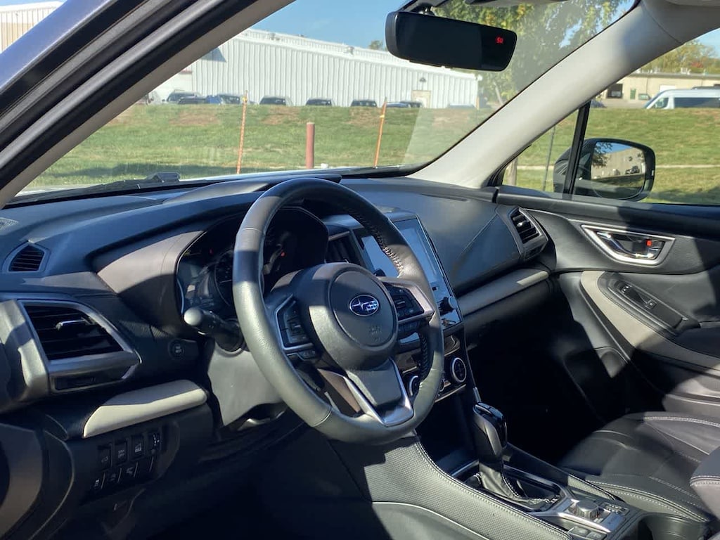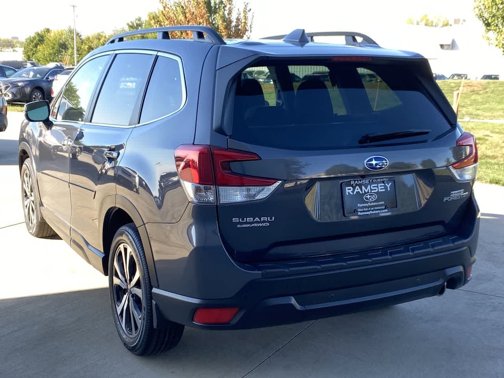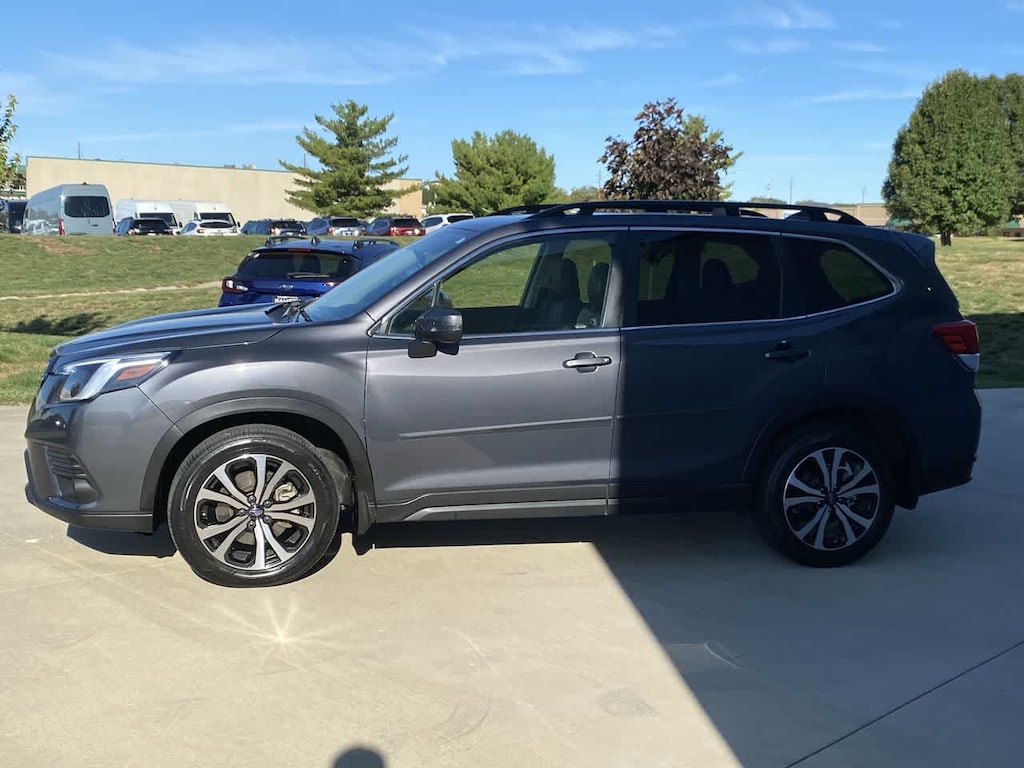 Forester Limited is nicely equipped with Nav & harman/kardon & RAB & Heated Steering Wheel (Heated Steering Wheel, Radio: Subaru Starlink 8.0 Multimedia Nav System, Reverse Automatic Braking System (RAB), and harman/kardon 9-Speaker Audio System), Subaru Certified Pre-Owned Certified, 3.70 Axle Ratio, 4-Wheel Disc Brakes, 6 Speakers, ABS brakes, Air Conditioning, Alloy wheels, AM/FM radio: SiriusXM, Anti-whiplash front head restraints, Auto High-beam Headlights, Auto-Dimming Exterior Mirror w/Approach Light, Auto-Dimming Mirror w/Compass & HomeLink, Automatic temperature control, Body Side Molding - Magnetite Gray Metallic, Brake assist, Bumpers: body-color, Cargo Net, CD player, Driver door bin, Driver vanity mirror, Dual front impact airbags, Dual front side impact airbags, Electronic Stability Control, Emergency communication system: STARLINK Safety and Security (Subscription Required), Exterior Parking Camera Rear, Four wheel independent suspension, Front anti-roll bar, Front Bucket Seats, Front Center Armrest, Front dual zone A/C, Front fog lights, Front reading lights, Fully automatic headlights, Heated door mirrors, Heated Front Bucket Seats, Heated front seats, Illuminated entry, Knee airbag, Leather Shift Knob, Low tire pressure warning, Navigation System, Occupant sensing airbag, Outside temperature display, Overhead airbag, Overhead console, Panic alarm, Passenger door bin, Passenger vanity mirror, Perforated Leather-Trimmed Upholstery, Power door mirrors, Power driver seat, Power Liftgate, Power moonroof: Panoramic, Power steering, Power windows, Radio data system, Radio: Subaru Starlink 8.0 Multimedia Plus System, Rear anti-roll bar, Rear Bumper Cover, Rear seat center armrest, Rear Seatback Protector, Rear window defroster, Rear window wiper, Remote keyless entry, Roof rack: rails only, Security system, Speed control, Speed-sensing steering, Splash Guards, Split folding rear seat, Spoiler, STARLINK/Apple CarPlay/Android Auto, Steering wheel mounted audio controls, Tachometer, Telescoping steering wheel, Tilt steering wheel, Traction control, Trip computer, Turn signal indicator mirrors, Variably intermittent wipers, and Wheels: 18 x 7.0 J Black Machine Finish Alloy.