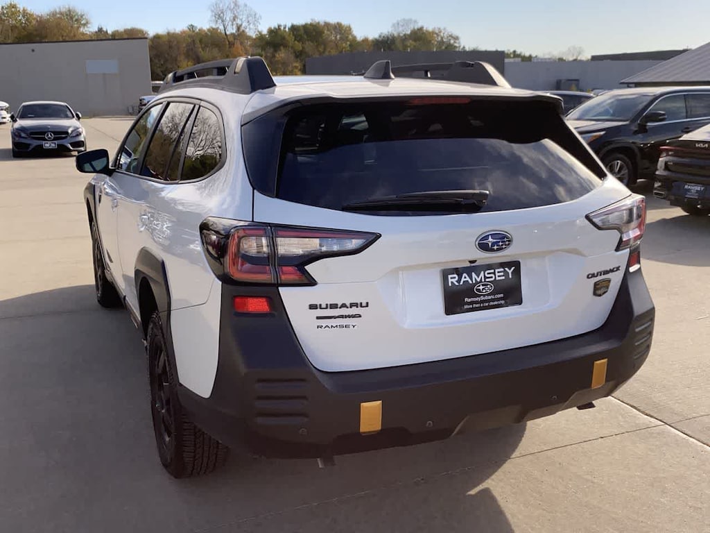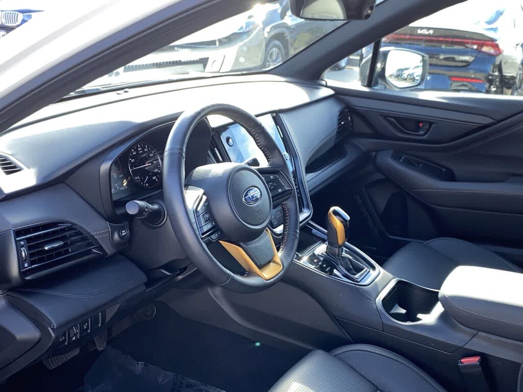 Outback Wilderness is nicely equipped with Power Moonroof & Navigation & RAB (Power Moonroof, Radio: Subaru 11.6 Multimedia System w/Navigation, and Reverse Automatic Braking (RAB) System), Subaru Certified Pre-Owned Certified, 12 Speakers, 4-Wheel Disc Brakes, ABS brakes, Air Conditioning, Alloy wheels, AM/FM radio: SiriusXM with 360L, Apple CarPlay & Android Auto, Auto High-beam Headlights, Auto-Dimming Exterior Mirror w/Approach Light, Auto-dimming Rear-View mirror, Automatic temperature control, Brake assist, Cargo Sidewall Protector, Compass, Driver door bin, Driver vanity mirror, Dual front impact airbags, Dual front side impact airbags, Electronic Stability Control, Emergency communication system: MySubaru Safety (3-year free trial), Exterior Parking Camera Rear, First Aid Kit, Four wheel independent suspension, Front anti-roll bar, Front Bucket Seats, Front Center Armrest w/Storage, Front dual zone A/C, Front fog lights, Front reading lights, Fully automatic headlights, Garage door transmitter: HomeLink, harman/kardonî Speakers, Heated door mirrors, Heated Front Bucket Seats, Heated front seats, Heated rear seats, Heated steering wheel, Illuminated entry, Knee airbag, Leather steering wheel, LED Upgrade, Low tire pressure warning, Occupant sensing airbag, Outside temperature display, Overhead airbag, Overhead console, Panic alarm, Passenger door bin, Passenger vanity mirror, Power door mirrors, Power driver seat, Power Liftgate, Power passenger seat, Power steering, Power windows, Radio: Subaru 11.6 Multimedia Plus System, Rear anti-roll bar, Rear seat center armrest, Rear window defroster, Rear window wiper, Remote keyless entry, Roof rack, Security system, Speed control, Speed-sensing steering, Split folding rear seat, Spoiler, StarTex-Trimmed Upholstery, Steering wheel mounted audio controls, Tachometer, Telescoping steering wheel, Tilt steering wheel, Traction control, Trip computer, Turn signal indicator mirrors, Variably intermittent wipers, Wheels: 17 x 7J Matte Black Aluminum-Alloy, and Wireless Charger.