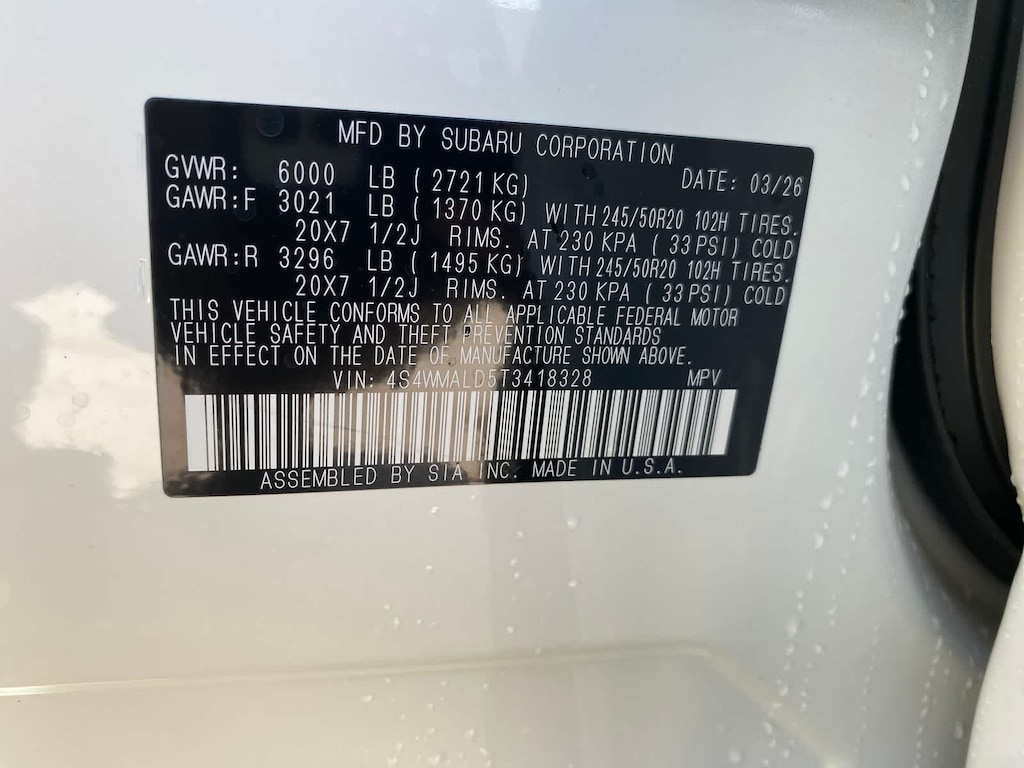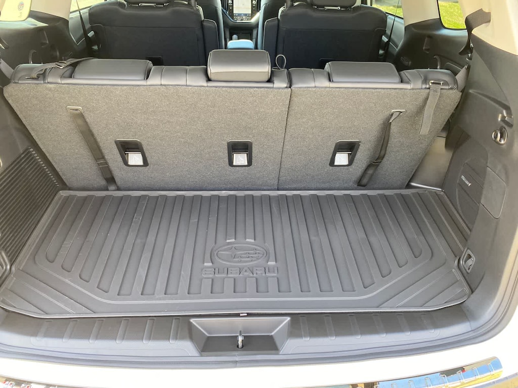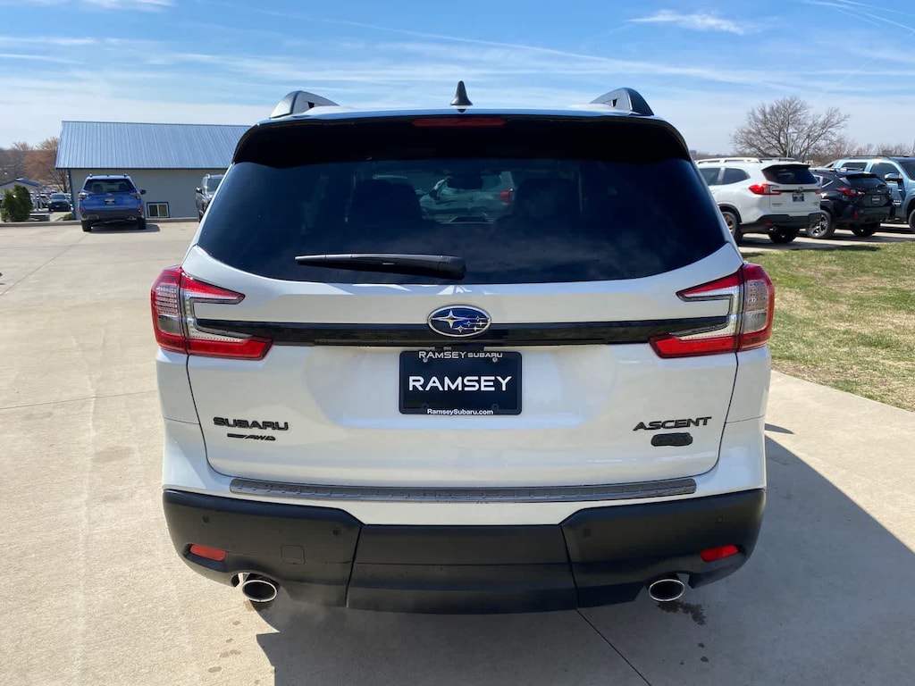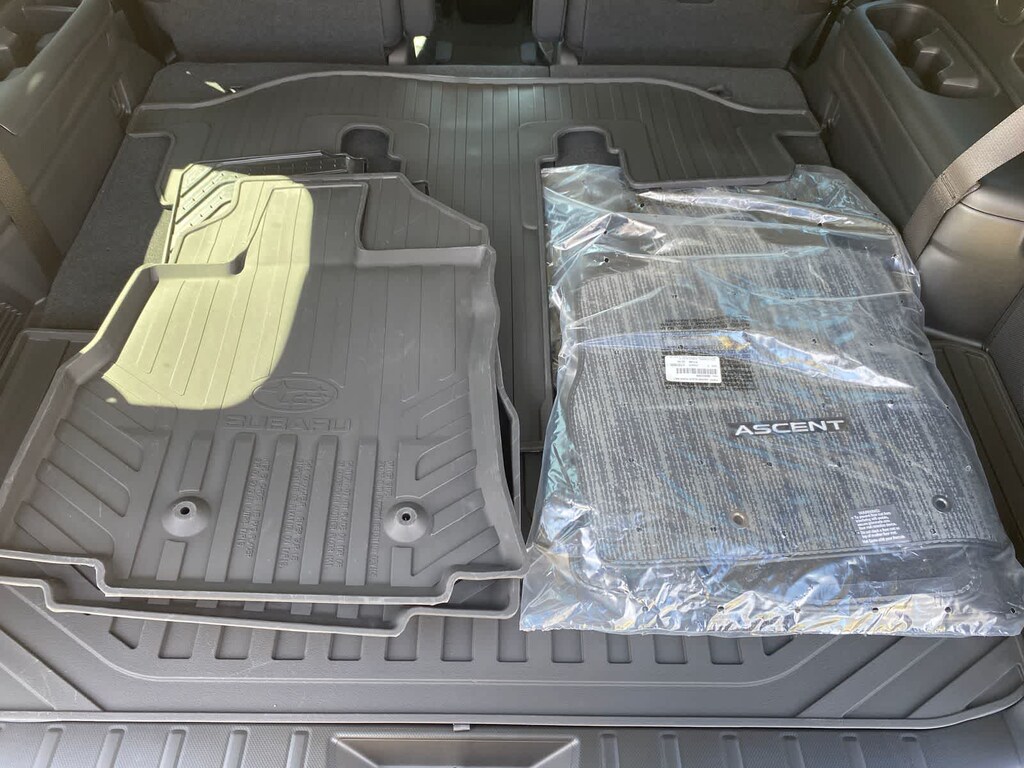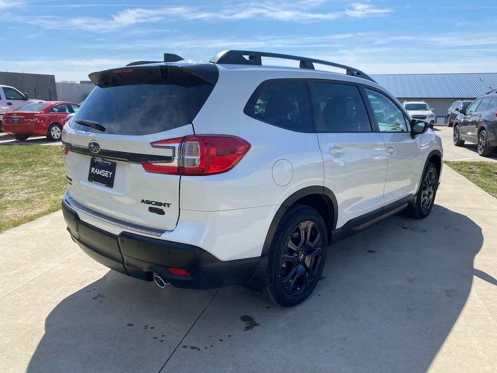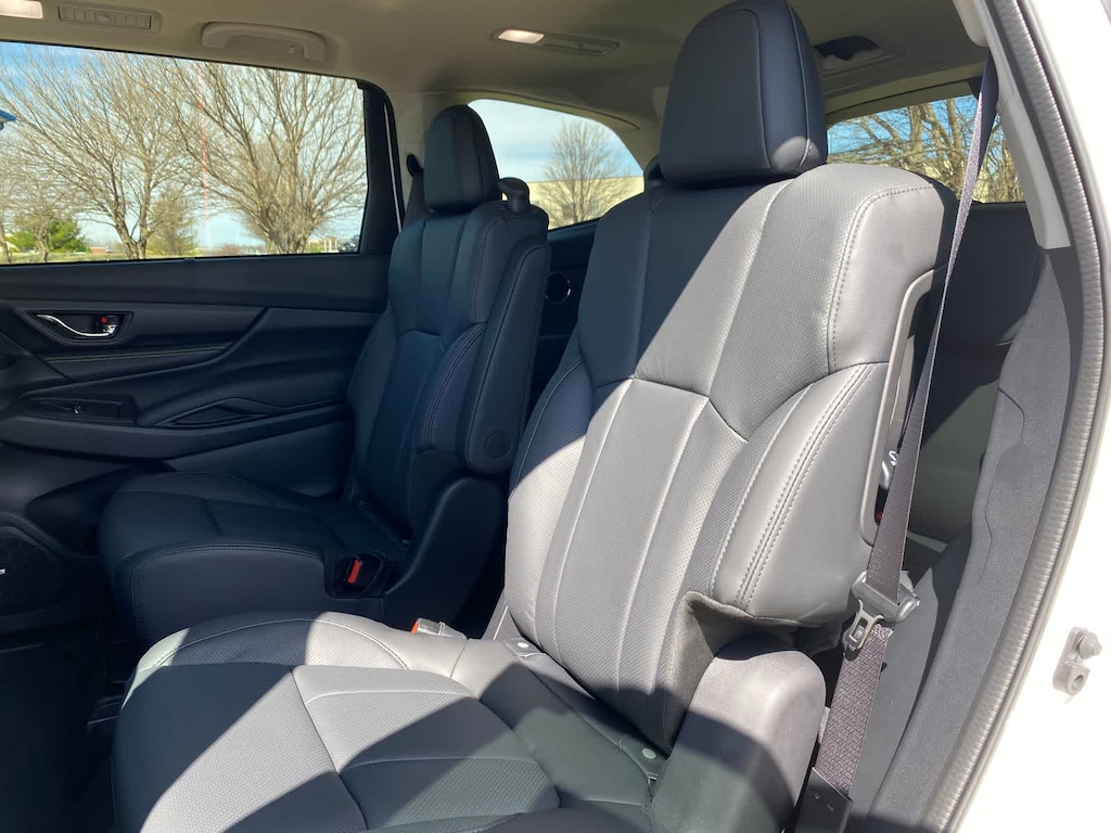 Ascent Onyx Edition Touring is nicely equipped with Standard Model, 14 Speakers, 3rd row seats: bench, 4-Wheel Disc Brakes, ABS brakes, Air Conditioning, All-Weather Floor Liners, Alloy wheels, AM/FM radio: SiriusXM with 360L, Apple CarPlay & Android Auto, Auto High-beam Headlights, Auto-Dimming Exterior Mirror with Approach Light, Auto-dimming Rear-View mirror, Automatic temperature control, Black Chrome Rear Bumper Cover, Brake assist, Bumpers: body-color, Cargo Tray, Compass, Delay-off headlights, Driver door bin, Driver vanity mirror, Dual front impact airbags, Dual front side impact airbags, Electronic Stability Control, Emergency communication system: MySubaru Companion (5-years free), Exterior Parking Camera Rear, Four wheel independent suspension, Front anti-roll bar, Front Bucket Seats, Front Center Armrest, Front dual zone A/C, Front fog lights, Front reading lights, Fully automatic headlights, Garage door transmitter: HomeLink, harman/kardonî Speakers, Heated and Ventilated Front Bucket Seats, Heated door mirrors, Heated front seats, Heated rear seats, Heated steering wheel, HVAC memory, Illuminated entry, Knee airbag, Leather Shift Knob, Leather steering wheel, Low tire pressure warning, Memory seat, Navigation system: MySubaru Navigator (1-year trial), Occupant sensing airbag, Outside temperature display, Overhead airbag, Overhead console, Panic alarm, Passenger door bin, Passenger vanity mirror, Perforated Nappa Leather-Trimmed Upholstery, Power door mirrors, Power driver seat, Power Liftgate, Power moonroof, Power passenger seat, Power steering, Power windows, Radio data system, Radio: Subaru 11.6 Multimedia System with Navigation, Rain sensing wipers, Rear air conditioning, Rear anti-roll bar, Rear reading lights, Rear window defroster, Rear window wiper, Reclining 3rd row seat, Remote keyless entry, Security system, Speed control, Speed-sensing steering, Splash Guards, Split folding rear seat, Spoiler, Steering wheel mounted audio controls, Tachometer, Telescoping steering wheel, Tilt steering wheel, Traction control, Trip computer, Turn signal indicator mirrors, Variably intermittent wipers, Ventilated front seats, and Wheels: 20 x 7.5 J Black Finish Aluminum Alloy.