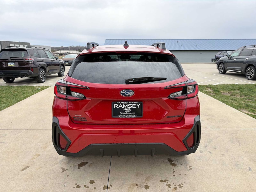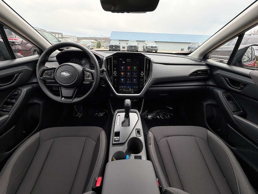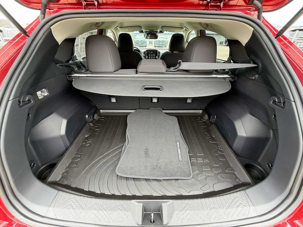 Crosstrek Premium is nicely equipped with Standard Model, 4-Wheel Disc Brakes, 6 Speakers, ABS brakes, Air Conditioning, Alloy wheels, AM/FM radio: SiriusXM with 360L, Anti-whiplash front head restraints, Auto High-beam Headlights, Auto-Dimming Mirror with Compass and HomeLink, Automatic temperature control, Brake assist, Bumpers: body-color, Cargo Cover, Cloth Upholstery, Driver door bin, Driver vanity mirror, Dual front impact airbags, Dual front side impact airbags, Electronic Stability Control, Emergency communication system: MySubaru Companion (5-years free), Exterior Parking Camera Rear, Four wheel independent suspension, Front anti-roll bar, Front Bucket Seats, Front Center Armrest, Front dual zone A/C, Front fog lights, Front reading lights, Fully automatic headlights, Illuminated entry, Knee airbag, LED Upgrade, Low tire pressure warning, Occupant sensing airbag, Outside temperature display, Overhead airbag, Overhead console, Panic alarm, Passenger door bin, Passenger vanity mirror, Power door mirrors, Power steering, Power windows, Radio data system, Radio: Subaru 11.6 Multimedia Plus System, Rear anti-roll bar, Rear seat center armrest, Rear side impact airbag, Rear window defroster, Rear window wiper, Remote keyless entry, Security system, Speed control, Speed-sensing steering, Split folding rear seat, Spoiler, Steering wheel mounted audio controls, Tachometer, Telescoping steering wheel, Tilt steering wheel, Traction control, Trip computer, Turn signal indicator mirrors, Variably intermittent wipers, and Wheels: 17 x 7.0 J Machine Finish Aluminum-Alloy.