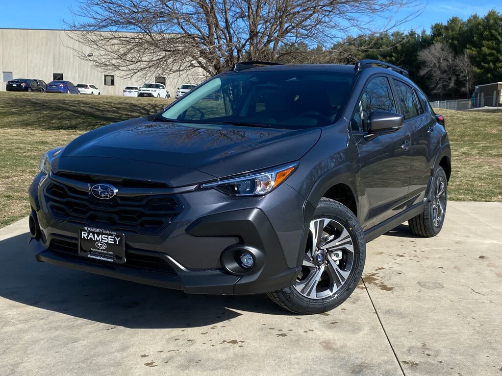 Crosstrek Premium is nicely equipped with All-Weather Package (Dual-Mode Heated Front Seats, Heated Power Exterior Mirrors, and Windshield De-Icer Wipers), BSD/RCTA and All Weather Package and Power Driver Seat and Power Moonroof (10-Way Power Drivers Seat, Blind Spot Detection (BSD), Power Moonroof, and Rear Cross-Traffic Alert (RCTA) System), 4-Wheel Disc Brakes, 6 Speakers, ABS brakes, Air Conditioning, All-Weather Floor Liners, Alloy wheels, AM/FM radio: SiriusXM with 360L, Anti-whiplash front head restraints, Auto High-beam Headlights, Auto-Dimming Mirror with Compass and HomeLink, Automatic temperature control, Brake assist, Bumpers: body-color, Cloth Upholstery, Driver door bin, Driver vanity mirror, Dual front impact airbags, Dual front side impact airbags, Electronic Stability Control, Emergency communication system: MySubaru Companion (5-years free), Exterior Parking Camera Rear, Four wheel independent suspension, Front anti-roll bar, Front Bucket Seats, Front Center Armrest, Front dual zone A/C, Front fog lights, Front reading lights, Fully automatic headlights, Illuminated entry, Knee airbag, Low tire pressure warning, Occupant sensing airbag, Outside temperature display, Overhead airbag, Overhead console, Panic alarm, Passenger door bin, Passenger vanity mirror, Power door mirrors, Power steering, Power windows, Radio data system, Radio: Subaru 11.6 Multimedia Plus System, Rear anti-roll bar, Rear Bumper Cover, Rear seat center armrest, Rear side impact airbag, Rear window defroster, Rear window wiper, Remote keyless entry, Security system, Speed control, Speed-sensing steering, Split folding rear seat, Spoiler, Steering wheel mounted audio controls, Tachometer, Telescoping steering wheel, Tilt steering wheel, Traction control, Trip computer, Turn signal indicator mirrors, Variably intermittent wipers, and Wheels: 17 x 7.0 J Machine Finish Aluminum-Alloy.
