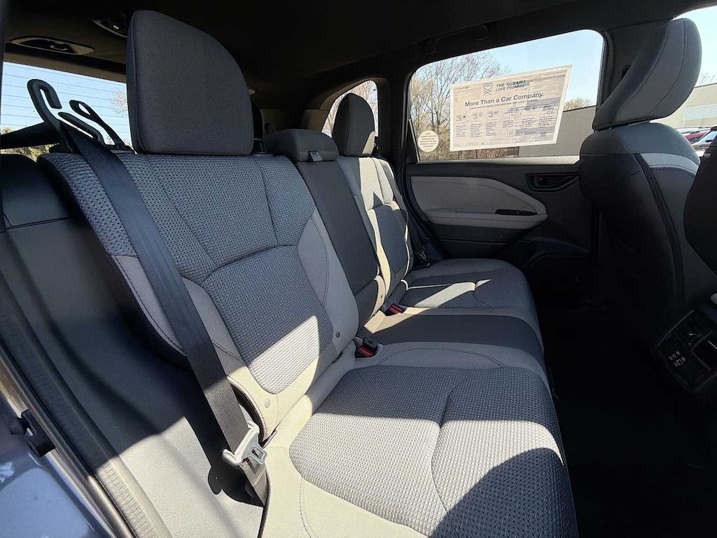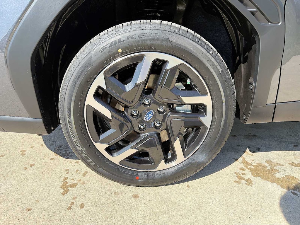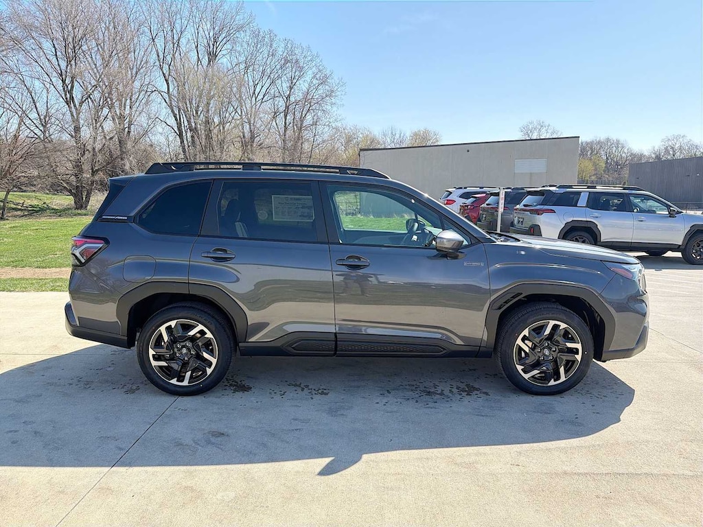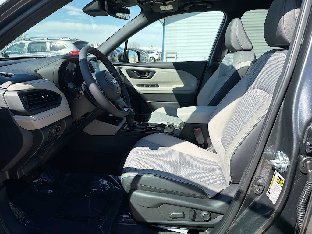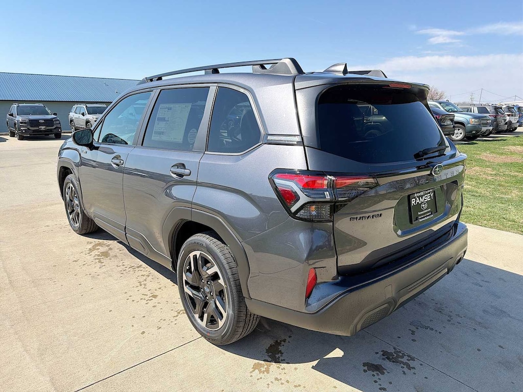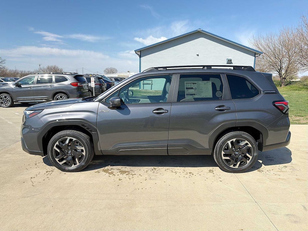 Forester Premium is nicely equipped with Standard Model, 4-Wheel Disc Brakes, 6 Speakers, ABS brakes, Air Conditioning, All-Weather Floor Liners, Alloy wheels, AM/FM radio: SiriusXM with 360L, Anti-whiplash front head restraints, Auto High-beam Headlights, Auto-Dimming Mirror with Compass and HomeLink, Automatic temperature control, Brake assist, Bumpers: body-color, Cargo Tray, Compass, Driver door bin, Driver vanity mirror, Dual front impact airbags, Dual front side impact airbags, Electronic Stability Control, Emergency communication system: MySubaru Companion (5-years free), Exterior Parking Camera Rear, Four wheel independent suspension, Front anti-roll bar, Front Bucket Seats, Front Center Armrest, Front dual zone A/C, Front fog lights, Front reading lights, Fully automatic headlights, Heated door mirrors, Heated Front Bucket Seats, Heated front seats, Illuminated entry, Knee airbag, Low tire pressure warning, Navigation System, Occupant sensing airbag, Outside temperature display, Overhead airbag, Overhead console, Panic alarm, Passenger door bin, Passenger vanity mirror, Power door mirrors, Power driver seat, Power Liftgate, Power moonroof: Panoramic, Power steering, Power windows, Premium Textured Cloth Upholstery, Radio data system, Radio: Subaru 11.6 Multimedia Navigation System, Rear anti-roll bar, Rear seat center armrest, Rear Seatback Protector, Rear window defroster, Rear window wiper, Remote keyless entry, Security system, Speed control, Speed-sensing steering, Split folding rear seat, Spoiler, Steering wheel mounted audio controls, Tachometer, Telescoping steering wheel, Tilt steering wheel, Traction control, Trip computer, Variably intermittent wipers, and Wheels: 18 x 7.0 J Dark Metallic Aluminum-Alloy.
