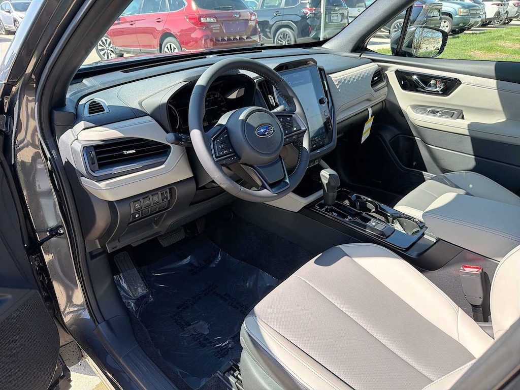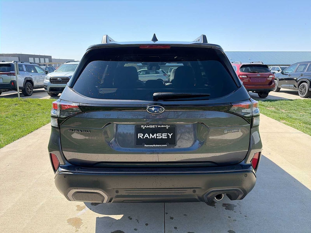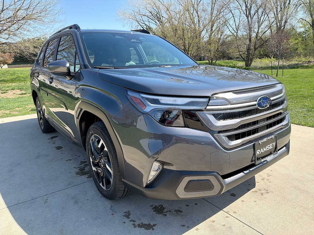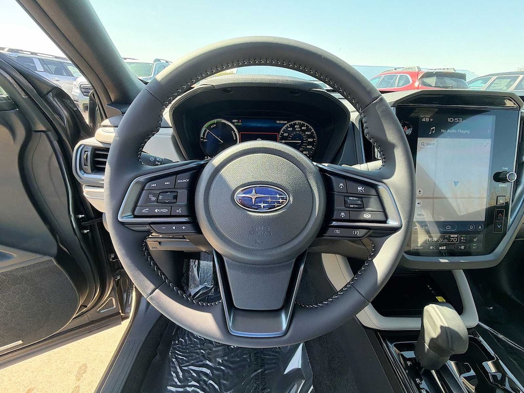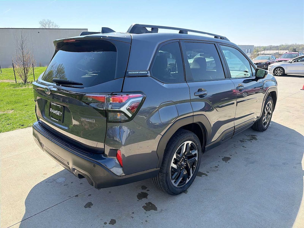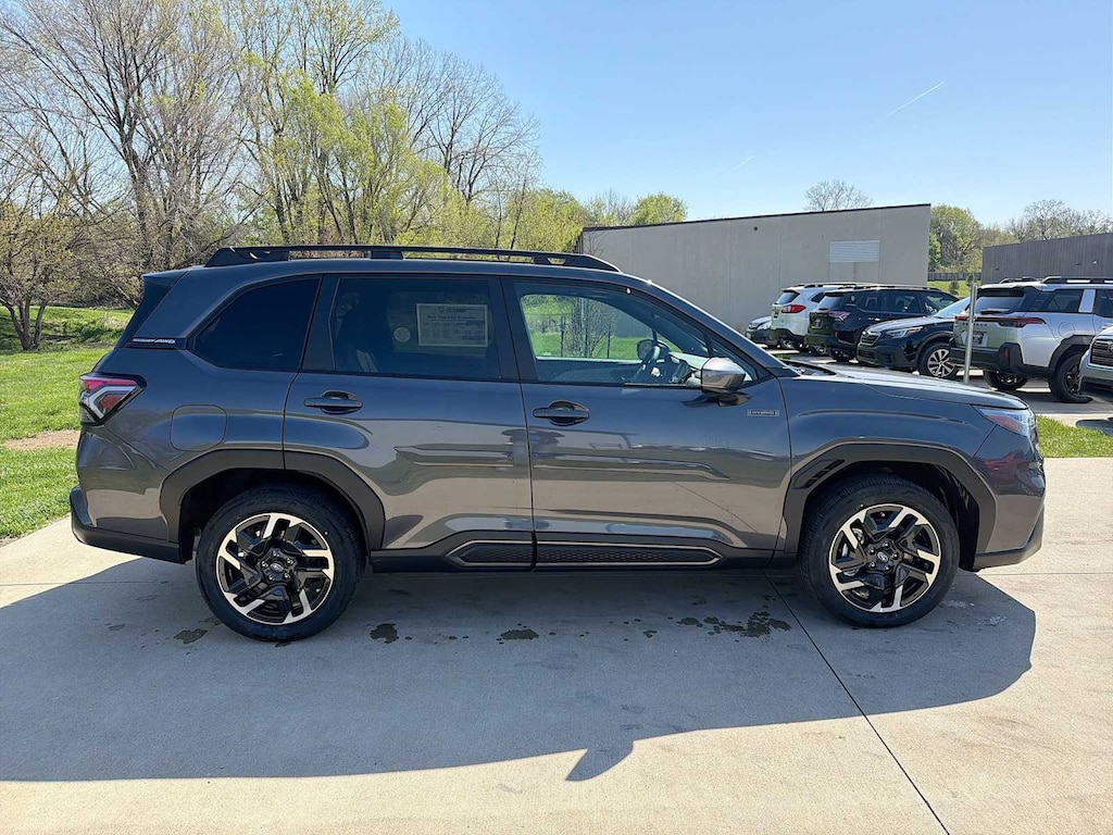Forester Limited Hybrid is nicely equipped with Standard Model, 11 Speakers, 4-Wheel Disc Brakes, ABS brakes, Air Conditioning, Alloy wheels, AM/FM radio: SiriusXM with 360L, Anti-whiplash front head restraints, Auto High-beam Headlights, Auto-Dimming Exterior Mirror with Approach Light, Auto-Dimming Mirror with Compass and HomeLink, Automatic temperature control, Body Side Molding - Magnetite Gray Metallic, Brake assist, Bumpers: body-color, Compass, Driver door bin, Driver vanity mirror, Dual front impact airbags, Dual front side impact airbags, Electronic Stability Control, Emergency communication system: MySubaru Companion (5-years free), Exterior Parking Camera Rear, Four wheel independent suspension, Front anti-roll bar, Front Bucket Seats, Front Center Armrest, Front dual zone A/C, Front fog lights, Front reading lights, Fully automatic headlights, harman/kardonî Speakers, Heated door mirrors, Heated Front Bucket Seats, Heated front seats, Illuminated entry, Knee airbag, Low tire pressure warning, Navigation System, Occupant sensing airbag, Outside temperature display, Overhead airbag, Overhead console, Panic alarm, Passenger door bin, Passenger vanity mirror, Power door mirrors, Power driver seat, Power Liftgate, Power moonroof: Panoramic, Power passenger seat, Power steering, Power windows, Radio data system, Radio: Subaru 11.6 Multimedia Navigation System, Rear anti-roll bar, Rear Bumper Cover, Rear seat center armrest, Rear window defroster, Rear window wiper, Remote keyless entry, Security system, Speed control, Speed-sensing steering, Split folding rear seat, Spoiler, StarTex Upholstery, Steering wheel mounted audio controls, Tachometer, Telescoping steering wheel, Tilt steering wheel, Traction control, Trip computer, Turn signal indicator mirrors, Variably intermittent wipers, and Wheels: 18 x 7.0 J Dark Metallic Aluminum-Alloy.