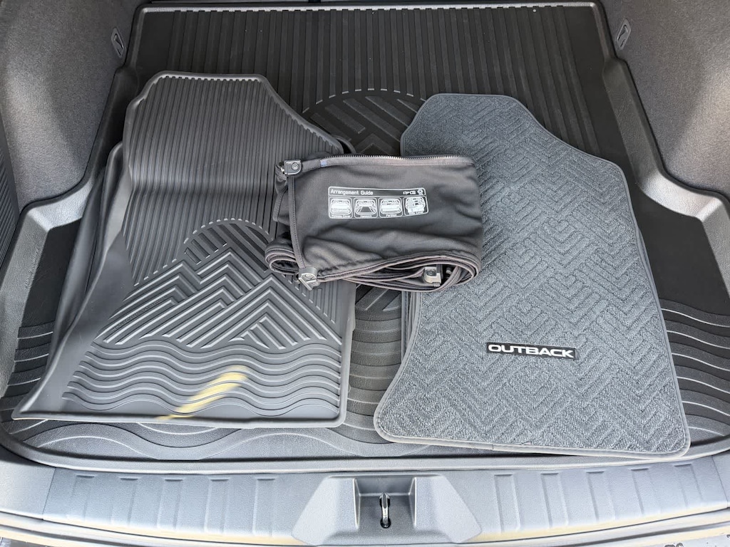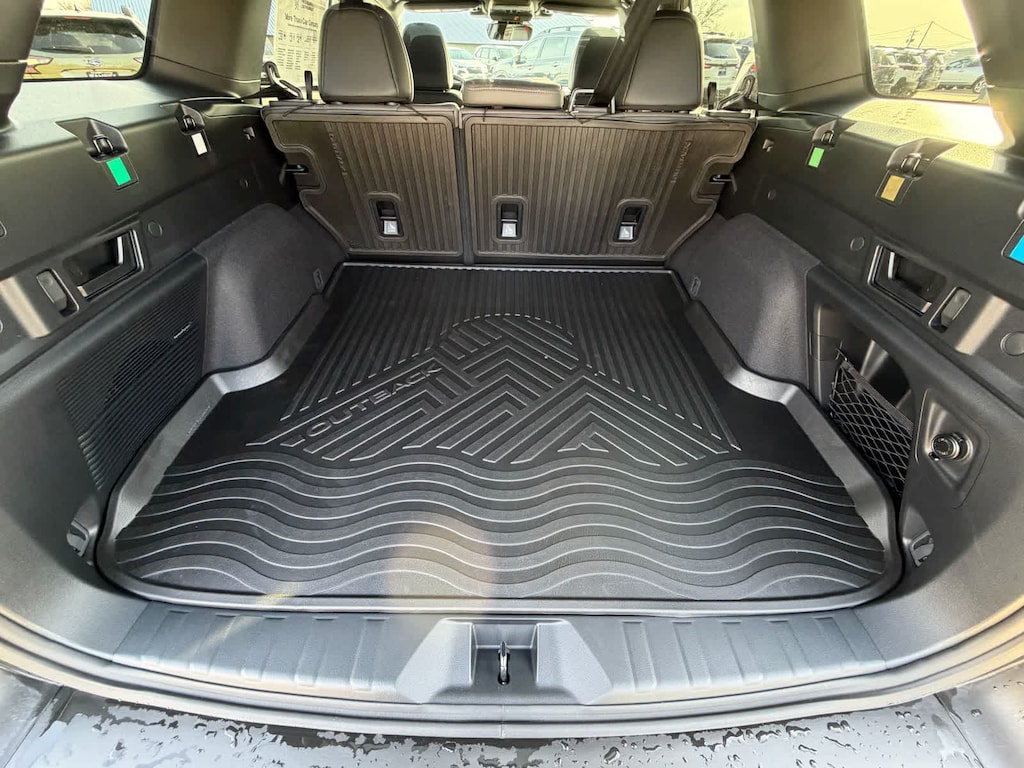 Outback Limited is nicely equipped with Standard Model, 12 Speakers, 4-Wheel Disc Brakes, ABS brakes, Air Conditioning, All-Weather Floor Liners, Alloy wheels, AM/FM radio: SiriusXM with 360L, Anti-whiplash front head restraints, Auto High-beam Headlights, Auto-Dimming Exterior Mirror with Approach Light, Auto-Dimming Mirror with Compass and HomeLink, Automatic temperature control, Blind Spot Warning, Brake assist, Bumpers: body-color, Compass, Driver door bin, Driver vanity mirror, Dual front impact airbags, Dual front side impact airbags, Electronic Stability Control, Emergency communication system: MySubaru Companion (5-years free), Exterior Parking Camera Rear, Four wheel independent suspension, Front anti-roll bar, Front Bucket Seats, Front Center Armrest w/Storage, Front dual zone A/C, Front fog lights, Front reading lights, Fully automatic headlights, harman/kardonî Speakers, Heated door mirrors, Heated Front Bucket Seats, Heated front seats, Heated rear seats, Heated steering wheel, HVAC memory, Illuminated entry, Knee airbag, Leather steering wheel, Low tire pressure warning, Memory seat, Navigation system: MySubaru Navigator (1-year trial), Occupant sensing airbag, Outside temperature display, Overhead airbag, Overhead console, Panic alarm, Passenger door bin, Passenger vanity mirror, Perforated Leather-Trimmed Upholstery, Power door mirrors, Power driver seat, Power Liftgate, Power moonroof, Power passenger seat, Power steering, Power windows, Radio: Subaru 12.1 Multimedia System with Navigation, Rain sensing wipers, Rear anti-roll bar, Rear seat center armrest, Rear Seatback Protector, Rear window defroster, Rear window wiper, Remote keyless entry, Security system, Speed control, Speed-sensing steering, Split folding rear seat, Spoiler, Steering wheel mounted audio controls, Tachometer, Telescoping steering wheel, Tilt steering wheel, Traction control, Trip computer, Turn signal indicator mirrors, Variably intermittent wipers, and Wheels: 18 x 7J Matte Black Finish Aluminum-Alloy.