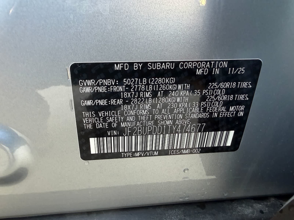 - Rear tires: 225/60HR18.0