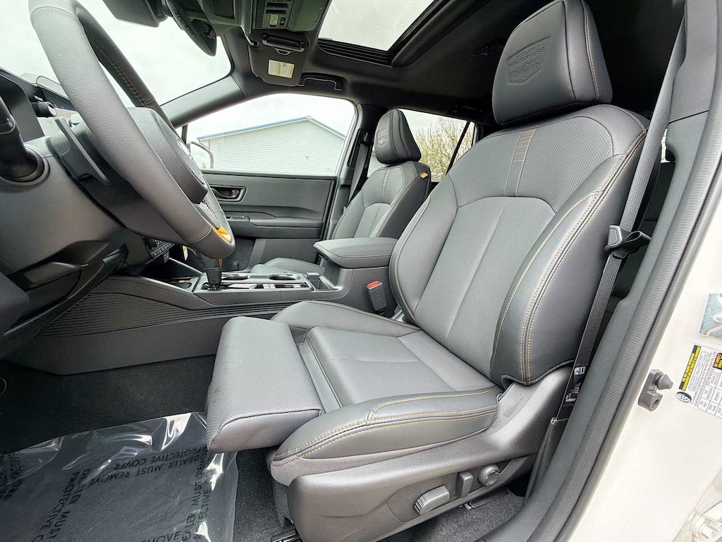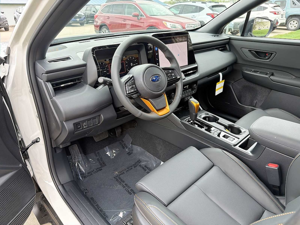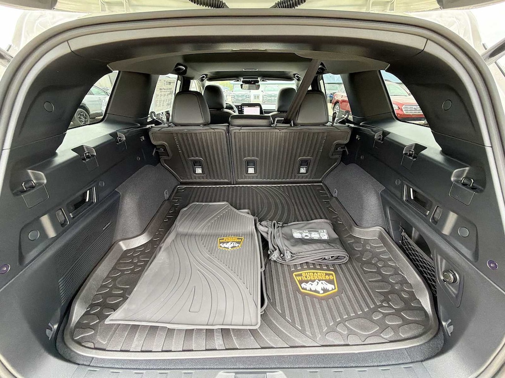 Outback Wilderness is nicely equipped with Moonroof and Navigation and Surround View Monitor and Ventilated Seats (Heated and Ventilated Front Bucket Seats, Nappa Leather Upholstery, Power Moonroof, Power-Folding Heated Exterior Mirrors, Radio: Subaru 12.1 Multimedia System with Navigation, and Surround View Monitor), 12 Speakers, 4-Wheel Disc Brakes, ABS brakes, Air Conditioning, Alloy wheels, AM/FM radio: SiriusXM with 360L, Anti-whiplash front head restraints, Auto High-beam Headlights, Automatic temperature control, Blind Spot Warning, Brake assist, Bumpers: body-color, Driver door bin, Driver vanity mirror, Dual front impact airbags, Dual front side impact airbags, Electronic Stability Control, Emergency communication system: MySubaru Companion (5-years free), Exterior Parking Camera Rear, Four wheel independent suspension, Front anti-roll bar, Front Bucket Seats, Front Center Armrest w/Storage, Front dual zone A/C, Front fog lights, Front reading lights, Fully automatic headlights, harman/kardonî Speakers, Heated door mirrors, Heated Front Bucket Seats, Heated front seats, Heated rear seats, Heated steering wheel, HVAC memory, Illuminated entry, Knee airbag, Leather Shift Knob, Leather steering wheel, LED Upgrade, Low tire pressure warning, Occupant sensing airbag, Outside temperature display, Overhead airbag, Overhead console, Panic alarm, Passenger door bin, Passenger vanity mirror, Power door mirrors, Power driver seat, Power Liftgate, Power steering, Power windows, Radio: Subaru 12.1 Multimedia System, Rain sensing wipers, Rear anti-roll bar, Rear seat center armrest, Rear window defroster, Rear window wiper, Remote keyless entry, Security system, Speed control, Speed-sensing steering, Split folding rear seat, Spoiler, StarTex-Trimmed Upholstery, Steering wheel mounted audio controls, Tachometer, Telescoping steering wheel, Tilt steering wheel, Traction control, Trip computer, Turn signal indicator mirrors, Variably intermittent wipers, and Wheels: 17 x 7J Matte Black Finish Aluminum-Alloy.