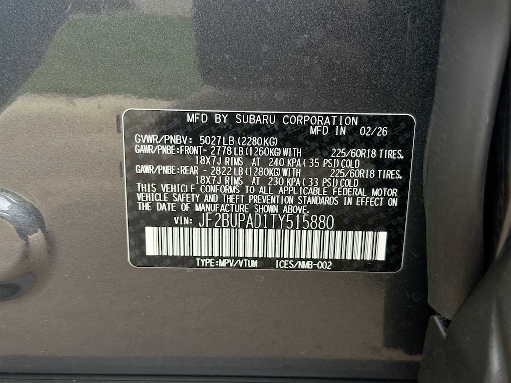 Outback Premium is nicely equipped with 4-Wheel Disc Brakes, 6 Speakers, ABS brakes, Air Conditioning, Alloy wheels, AM/FM radio: SiriusXM with 360L, Anti-whiplash front head restraints, Auto High-beam Headlights, Automatic temperature control, Blind Spot Warning, Brake assist, Bumpers: body-color, Driver door bin, Driver vanity mirror, Dual front impact airbags, Dual front side impact airbags, Electronic Stability Control, Emergency communication system: MySubaru Companion (5-years free), Exterior Parking Camera Rear, Four wheel independent suspension, Front anti-roll bar, Front Bucket Seats, Front Center Armrest w/Storage, Front dual zone A/C, Front fog lights, Front reading lights, Fully automatic headlights, Heated door mirrors, Heated Front Bucket Seats, Heated front seats, HVAC memory, Illuminated entry, Knee airbag, Leather steering wheel, Low tire pressure warning, Occupant sensing airbag, Outside temperature display, Overhead airbag, Overhead console, Panic alarm, Passenger door bin, Passenger vanity mirror, Power door mirrors, Power driver seat, Power Liftgate, Power steering, Power windows, Radio: Subaru 12.1 Multimedia System, Rear anti-roll bar, Rear seat center armrest, Rear window defroster, Rear window wiper, Remote keyless entry, Security system, Speed control, Speed-sensing steering, Split folding rear seat, Spoiler, StarTex Upholstery, Steering wheel mounted audio controls, Tachometer, Telescoping steering wheel, Tilt steering wheel, Traction control, Trip computer, Turn signal indicator mirrors, Variably intermittent wipers, and Wheels: 18 x 7J Aluminum-Alloy.