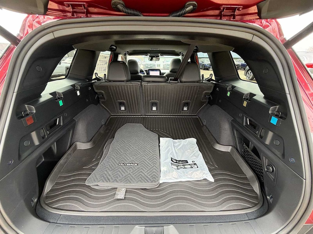 Outback Premium is nicely equipped with Navigation and Heated Steering Wheel and Moonroof (Partial Heated Steering Wheel, Power Moonroof, Radio: Subaru 12.1 Multimedia System with Navigation, Rain Sensor Windshield Wipers, and Wireless Charger), 4-Wheel Disc Brakes, 6 Speakers, ABS brakes, Air Conditioning, Alloy wheels, AM/FM radio: SiriusXM with 360L, Anti-whiplash front head restraints, Auto High-beam Headlights, Automatic temperature control, Blind Spot Warning, Brake assist, Bumpers: body-color, Driver door bin, Driver vanity mirror, Dual front impact airbags, Dual front side impact airbags, Electronic Stability Control, Emergency communication system: MySubaru Companion (5-years free), Exterior Parking Camera Rear, Four wheel independent suspension, Front anti-roll bar, Front Bucket Seats, Front Center Armrest w/Storage, Front dual zone A/C, Front fog lights, Front reading lights, Fully automatic headlights, Heated door mirrors, Heated Front Bucket Seats, Heated front seats, HVAC memory, Illuminated entry, Knee airbag, Leather steering wheel, Low tire pressure warning, Occupant sensing airbag, Outside temperature display, Overhead airbag, Overhead console, Panic alarm, Passenger door bin, Passenger vanity mirror, Power door mirrors, Power driver seat, Power Liftgate, Power steering, Power windows, Radio: Subaru 12.1 Multimedia System, Rear anti-roll bar, Rear Bumper Cover, Rear seat center armrest, Rear Seatback Protector, Rear window defroster, Rear window wiper, Remote keyless entry, Security system, Speed control, Speed-sensing steering, Split folding rear seat, Spoiler, StarTex Upholstery, Steering wheel mounted audio controls, Tachometer, Telescoping steering wheel, Tilt steering wheel, Traction control, Trip computer, Turn signal indicator mirrors, Variably intermittent wipers, and Wheels: 18 x 7J Aluminum-Alloy.
