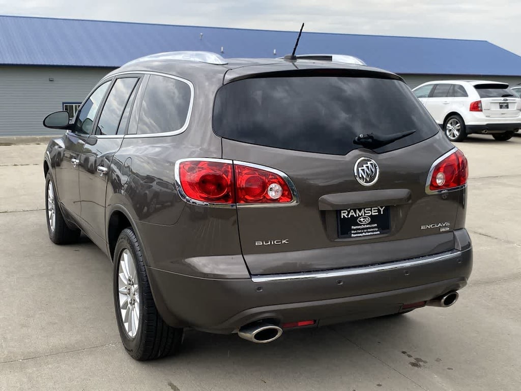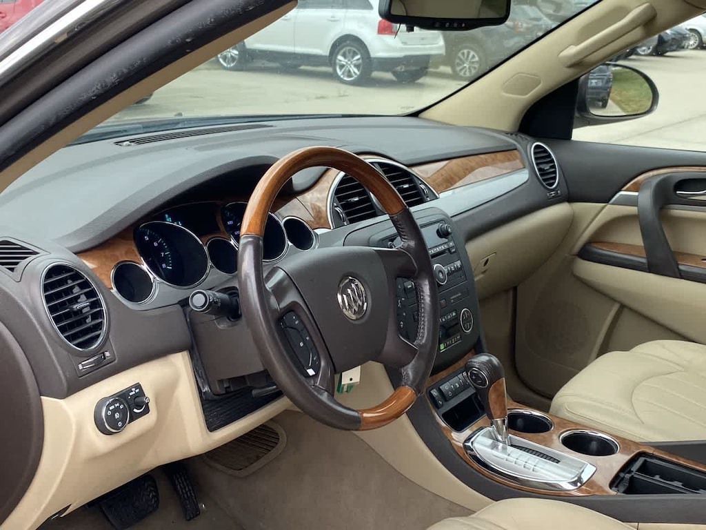 Enclave CXL is nicely equipped with Driver Confidence Package (Rear-View Camera System, Remote Vehicle Starter System, and Ultrasonic Rear Parking Assist), FWD, 115-Volt 3-Prong Household-Style Power Outlet, 19 9-Spoke Chrome-Clad Aluminum Wheels, 3.16 Axle Ratio, 3rd row seats: split-bench, 4-Way Power Passenger Seat Adjuster, 4-Wheel Disc Brakes, 7-Passenger Seating w/2nd Row Captains Chairs, 8-Way Power Driver Seat Adjuster, ABS brakes, Air Conditioning, Alloy wheels, AM/FM radio: XM, Auto-dimming Rear-View mirror, Automatic temperature control, Brake assist, CD player, Compass, Delay-off headlights, Driver door bin, Driver vanity mirror, Dual front impact airbags, Dual front side impact airbags, Electronic Stability Control, Emergency communication system: OnStar Directions & Connections, Exterior Parking Camera Rear, Four wheel independent suspension, Front anti-roll bar, Front Bucket Seats, Front Center Armrest w/Storage, Front dual zone A/C, Front fog lights, Front License Plate Mounting Bracket, Front reading lights, Fully automatic headlights, Garage door transmitter, Heated door mirrors, Heated front seats, High intensity discharge headlights: Bi-Xenon, Illuminated entry, Leather Seat Trim w/Perforated Seat Inserts, Leather steering wheel, Low tire pressure warning, Memory seat, Memory Settings, Occupant sensing airbag, Outside temperature display, Overhead airbag, Panic alarm, Passenger door bin, Passenger vanity mirror, Power door mirrors, Power driver seat, Power Liftgate, Power passenger seat, Power steering, Power Tilt-Sliding Sunroof, Power windows, Premium Ride Suspension, Radio data system, Rear air conditioning, Rear anti-roll bar, Rear reading lights, Rear window defroster, Rear window wiper, Remote keyless entry, Roof rack: rails only, Security system, Speed control, Speed-sensing steering, Spoiler, Steering wheel mounted audio controls, Tachometer, Telescoping steering wheel, Tilt steering wheel, Traction control, Trip computer, Turn signal indicator mirrors, Variably intermittent wipers, Voltmeter, and XM Radio.