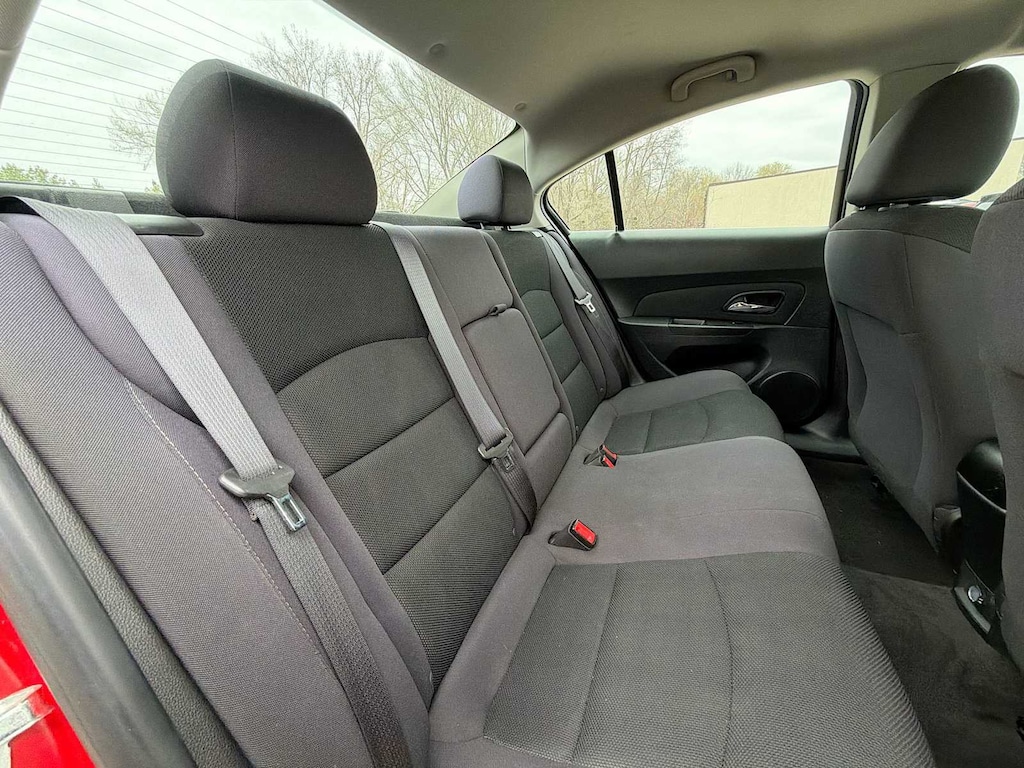 Cruze 1LT is nicely equipped with Preferred Equipment Group 1SD, 16 Painted Aluminum Wheels, 6 Speaker Audio System Feature, 6 Speakers, 6-Way Manual Driver Seat Adjuster, ABS brakes, Air Conditioning, Alloy wheels, AM/FM radio: SiriusXM, AM/FM Stereo w/CD Player/MP3 Playback, Brake assist, Bumpers: body-color, CD player, Compass, Delay-off headlights, Driver door bin, Driver vanity mirror, Dual front impact airbags, Dual front side impact airbags, Electronic Stability Control, Emergency communication system: OnStar Directions & Connections, Front anti-roll bar, Front Bucket Seats, Front Center Armrest, Front Passenger 6-Way Manual Seat Adjuster, Front reading lights, Front wheel independent suspension, Fully automatic headlights, Illuminated entry, Knee airbag, Low tire pressure warning, Occupant sensing airbag, Outside temperature display, Overhead airbag, Panic alarm, Passenger door bin, Passenger vanity mirror, Power door mirrors, Power steering, Power windows, Premium Cloth Seat Trim, Radio data system, Rear seat center armrest, Rear side impact airbag, Rear window defroster, Remote keyless entry, Security system, SiriusXM Satellite Radio, Speed control, Speed-sensing steering, Split folding rear seat, Steering wheel mounted audio controls, Tachometer, Telescoping steering wheel, Tilt steering wheel, Traction control, Trip computer, Variably intermittent wipers, and Voltmeter.