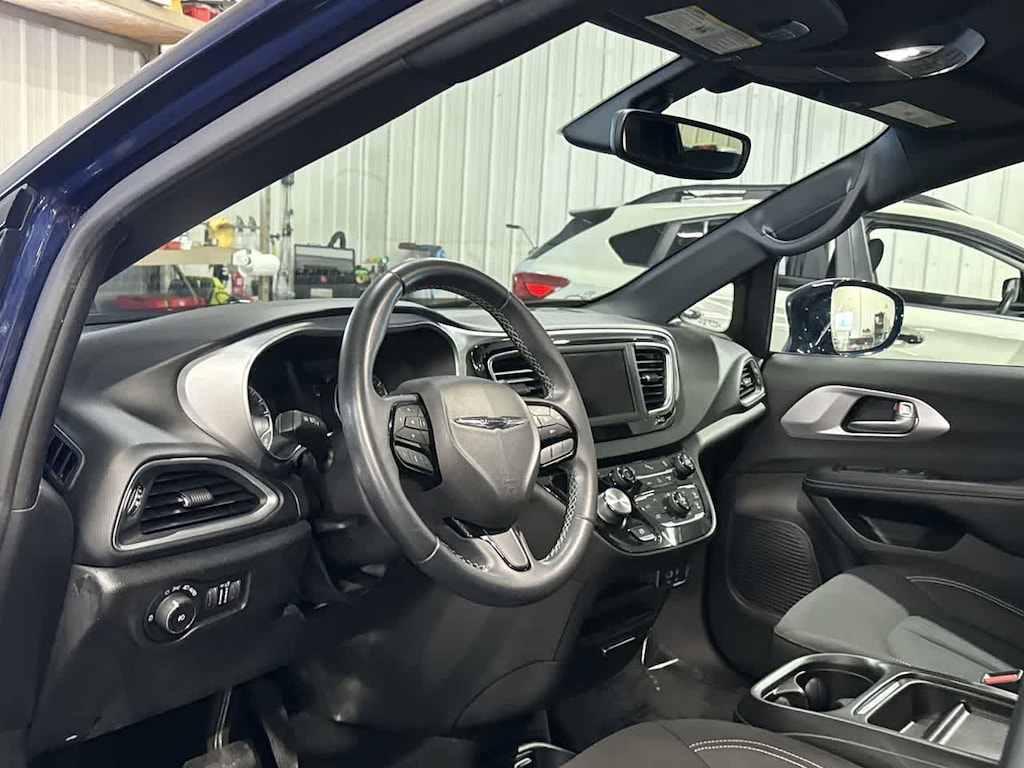Pacifica Touring Plus is nicely equipped with Quick Order Package 27W, S Appearance Package (Black Badging, Black Chrysler Grille Wing Badge, Black Day Light Opening Moldings, Black Spear Applique - Rear Fascia, Body Color Door Handles, Bridgestone Brand Tires, Cloth Bucket Seats w/S Logo, Leather Wrapped Steering Wheel, S Badge, Upper/Lower Grilles/Blk Surrounds Premium Fascia, Wheels: 18 x 7.5 Aluminum Black Noise, and 1st Row Soft Seatback), SafetyTec (DISC) (Blind Spot & Cross Path Detection and ParkSense Rear Park Assist w/Stop), 17 x 7.0 Aluminum Wheels, 3.25 Axle Ratio, 3rd row seats: split-bench, 4-Wheel Disc Brakes, 6 Speakers, ABS brakes, Air Conditioning, Alloy wheels, AM/FM radio: SiriusXM, Apple CarPlay, Apple CarPlay/Android Auto, Automatic temperature control, Black Seats, Black Stow N Place Roof Rack, Brake assist, Bumpers: body-color, Cloth Bucket Seats, Compass, Delay-off headlights, Driver door bin, Driver vanity mirror, Drivers Seat Mounted Armrest, Dual front impact airbags, Dual front side impact airbags, Electronic Stability Control, Falken Brand Tires, Four wheel independent suspension, Front anti-roll bar, Front Bucket Seats, Front dual zone A/C, Front fog lights, Front reading lights, Fully automatic headlights, Garage door transmitter, Google Android Auto, GPS Antenna Input, Heated door mirrors, Illuminated entry, Integrated Voice Command w/Bluetooth, Knee airbag, Low tire pressure warning, Occupant sensing airbag, Outside temperature display, Overhead airbag, Overhead console, Panic alarm, ParkView Rear Back-Up Camera, Passenger door bin, Passenger seat mounted armrest, Passenger vanity mirror, Power door mirrors, Power driver seat, Power Liftgate, Power steering, Power windows, Radio data system, Radio: Uconnect 4 w/7 Display, Rear air conditioning, Rear reading lights, Rear window defroster, Rear window wiper, Reclining 3rd row seat, Remote keyless entry, Security system, Single Rear Overhead DVD System, SiriusXM Satellite Radio, Speed control, Split folding rear seat, Spoiler, Steering wheel mounted audio controls, Tachometer, Telescoping steering wheel, Tilt steering wheel, Touring Suspension, Traction control, Trip computer, USB Host Flip, Variably intermittent wipers, Voltmeter, and Wheels: 20 x 7.5 Aluminum Black Noise.