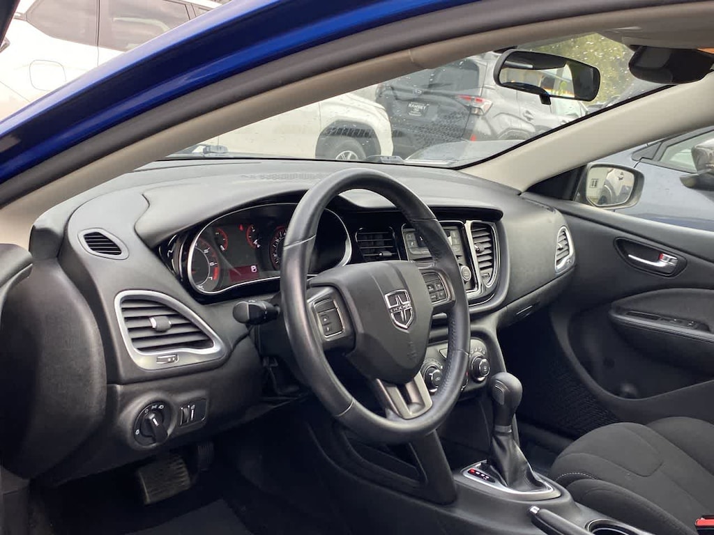 Dart SXT is nicely equipped with Quick Order Package 24B SXT, 12V Auxiliary Power Outlet, 17 x 7.0 Steel Wheels, 17 x 7.5 Aluminum Painted Wheels, 17 Wheel Covers, 4-Wheel Disc Brakes, 6 Speakers, ABS brakes, Air Conditioning, AM/FM radio, Anti-whiplash front head restraints, Brake assist, Bumpers: body-color, CD player, Delay-off headlights, Driver door bin, Driver vanity mirror, Dual front impact airbags, Dual front side impact airbags, Electronic Stability Control, Four wheel independent suspension, Front anti-roll bar, Front Bucket Seats, Front Center Armrest, Front reading lights, Illuminated entry, Knee airbag, Low tire pressure warning, Occupant sensing airbag, Outside temperature display, Overhead airbag, Panic alarm, Passenger door bin, Passenger vanity mirror, Power door mirrors, Power steering, Power windows, Premium Cloth Seats, Radio data system, Radio: Uconnect 200 AM/FM/CD/MP3, Rear anti-roll bar, Rear reading lights, Rear seat center armrest, Rear side impact airbag, Rear window defroster, Remote keyless entry, Security system, Speed-sensing steering, Speed-Sensitive Wipers, Split folding rear seat, Tachometer, Telescoping steering wheel, Tilt steering wheel, Traction control, Trip computer, and Variably intermittent wipers.