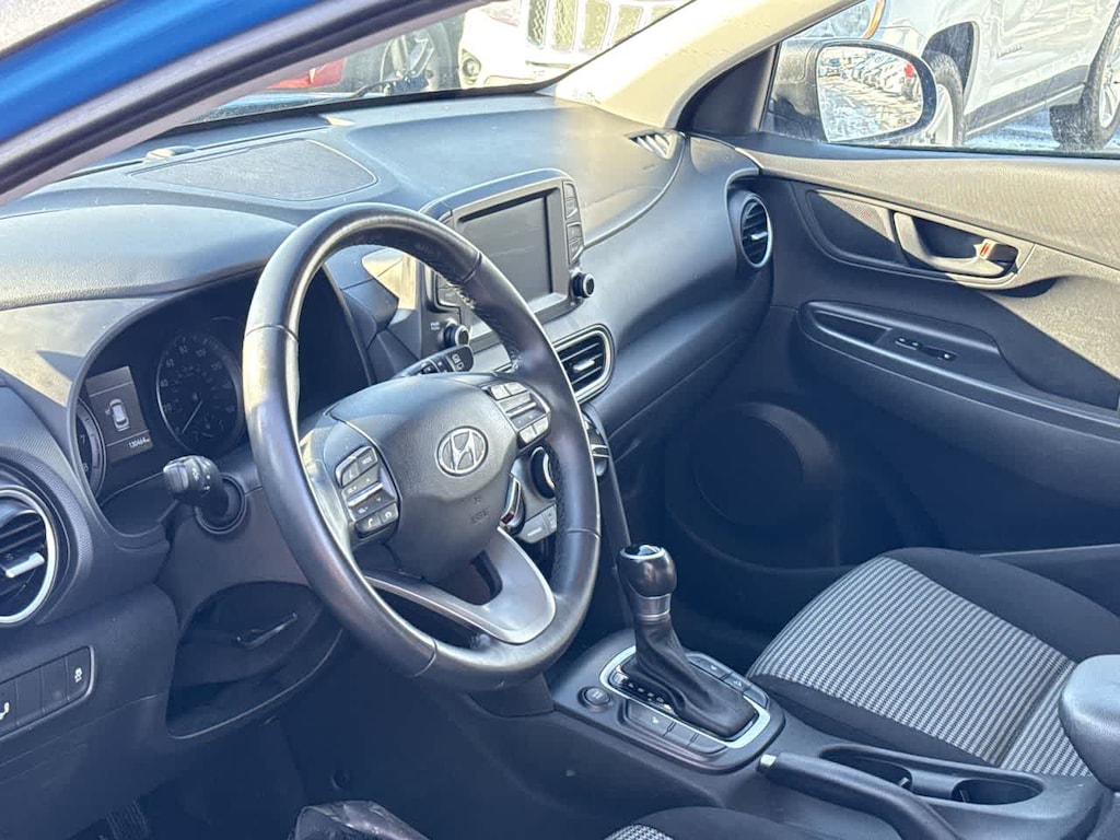 Kona SEL is nicely equipped with Option Group 01, 17 x 7.0 Alloy Wheels, 3.510 Axle Ratio, 4-Wheel Disc Brakes, 6 Speakers, 6-Way Adjustable Drivers Seat, ABS brakes, Air Conditioning, Alloy wheels, AM/FM radio: SiriusXM, Apple CarPlay & Android Auto, Brake assist, Bumper Applique, Bumpers: body-color, Carpeted Floor Mats, Cloth Seat Trim, Delay-off headlights, Driver door bin, Driver vanity mirror, Dual front impact airbags, Dual front side impact airbags, Electronic Stability Control, Exterior Parking Camera Rear, Front anti-roll bar, Front Bucket Seats, Front Center Armrest, Front reading lights, Front wheel independent suspension, Fully automatic headlights, Heated door mirrors, Heated Front Bucket Seats, Heated front seats, Illuminated entry, Leather Shift Knob, Leather steering wheel, Low tire pressure warning, Occupant sensing airbag, Outside temperature display, Overhead airbag, Overhead console, Panic alarm, Passenger door bin, Passenger vanity mirror, Power door mirrors, Power steering, Power windows, Radio: AM/FM/HD Radio/SiriusXM Audio System, Rear seat center armrest, Rear window defroster, Rear window wiper, Remote keyless entry, Roof rack: rails only, Security system, Speed control, Speed-sensing steering, Split folding rear seat, Spoiler, Steering wheel mounted audio controls, Tachometer, Telescoping steering wheel, Tilt steering wheel, Traction control, Trip computer, Turn signal indicator mirrors, Variably intermittent wipers, and Wheel Locks.