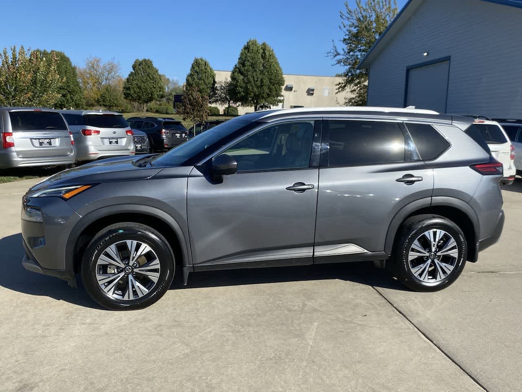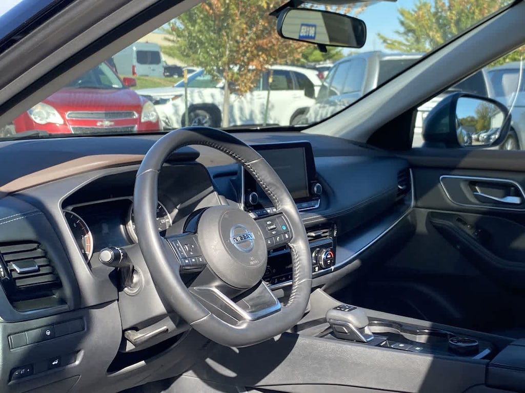 Rogue SV is nicely equipped with Premium Package (Heated Driver & Front Passenger Seats, Heated Leather-Wrapped Steering Wheel, Leatherette Seat Trim, Power Liftgate, Power Panoramic Moonroof, Roof Rails, and Second Row Sunshades), AWD, 18 Aluminum Alloy Wheels, 4-Wheel Disc Brakes, 5.604 Axle Ratio, 6 Speakers, ABS brakes, Air Conditioning, Alloy wheels, AM/FM Radio, AM/FM radio, Auto High-beam Headlights, Automatic temperature control, Black Splash Guards (Set of 4), Brake assist, Bumpers: body-color, Chrome Rear Bumper Protector, Cloth Seat Trim, Delay-off headlights, Driver door bin, Driver vanity mirror, Dual front impact airbags, Dual front side impact airbags, Electronic Stability Control, Emergency communication system: NissanConnect Services, First Aid Kit, Floor Mats w/1-Piece Cargo Area Protector, Four wheel independent suspension, Front anti-roll bar, Front Bucket Seats, Front Center Armrest, Front dual zone A/C, Front reading lights, Fully automatic headlights, Heated door mirrors, Illuminated entry, Knee airbag, Low tire pressure warning, NissanConnect featuring Apple CarPlay and Android Auto, Occupant sensing airbag, Outside temperature display, Overhead airbag, Overhead console, Panic alarm, Passenger door bin, Passenger vanity mirror, Power door mirrors, Power driver seat, Power steering, Power windows, Radio data system, Rear anti-roll bar, Rear Parking Sensors, Rear seat center armrest, Rear side impact airbag, Rear window defroster, Rear window wiper, Remote keyless entry, Security system, Speed control, Speed-Sensitive Wipers, Split folding rear seat, Spoiler, Steering wheel mounted audio controls, Tachometer, Telescoping steering wheel, Tilt steering wheel, Traction control, Trip computer, Turn signal indicator mirrors, and Variably intermittent wipers.