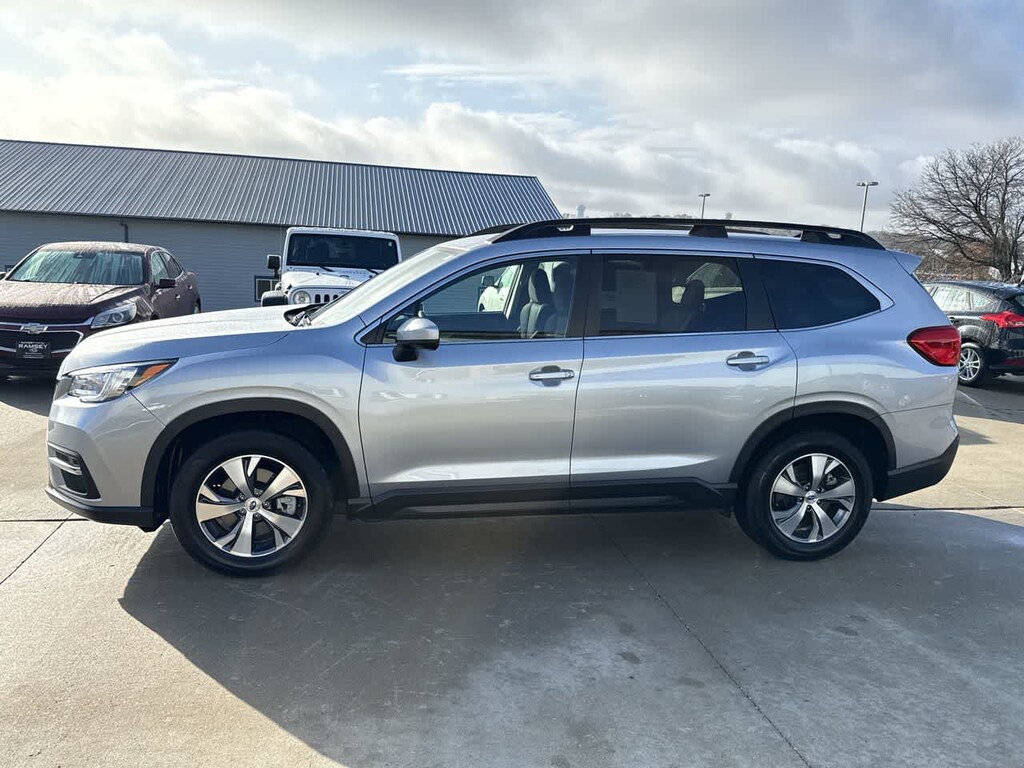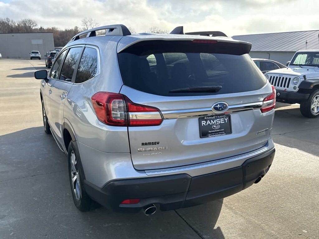 Ascent Premium is nicely equipped with Convenience Package (Auto-Dimming Rear View Compass Mirror w/HomeLink, Keyless Access w/Push-Button Start, Power Rear Gate w/Automatic Close & Height Memory, and Reverse Automatic Braking (RAB) System), Subaru Certified Pre-Owned Certified, 3rd row seats: bench, 4-Wheel Disc Brakes, 6 Speakers, ABS brakes, Air Conditioning, All-Weather Floor Liners, Alloy wheels, AM/FM radio: SiriusXM, Auto High-beam Headlights, Auto-Dimming Exterior Mirror w/Approach Light, Automatic temperature control, Axle Ratio: 4.44, Brake assist, Bumpers: body-color, Cargo Cover, Cargo Net, CD player, Delay-off headlights, Driver door bin, Driver vanity mirror, Dual front impact airbags, Dual front side impact airbags, Electronic Stability Control, Emergency communication system: STARLINK Safety and Security (Subscription Required), Exterior Parking Camera Rear, Four wheel independent suspension, Front anti-roll bar, Front Bucket Seats, Front Center Armrest, Front dual zone A/C, Front reading lights, Fully automatic headlights, Heated door mirrors, Heated Front Bucket Seats, Heated front seats, Illuminated entry, Knee airbag, Low tire pressure warning, Occupant sensing airbag, Outside temperature display, Overhead airbag, Overhead console, Panic alarm, Passenger door bin, Passenger vanity mirror, Power door mirrors, Power driver seat, Power steering, Power windows, Radio data system, Radio: Subaru STARLINK 8.0 Multimedia Plus System, Rear air conditioning, Rear anti-roll bar, Rear Bumper Cover, Rear reading lights, Rear window defroster, Rear window wiper, Reclining 3rd row seat, Remote keyless entry, Security system, Speed control, Spill Resistant Coated Cloth Upholstery, Split folding rear seat, Spoiler, STARLINK/Apple CarPlay/Android Auto, Steering wheel mounted audio controls, Tachometer, Telescoping steering wheel, Tilt steering wheel, Traction control, Trip computer, Variably intermittent wipers, and Wheels: 18 x 7.5 J Gray Alloy w/Machine Finish.