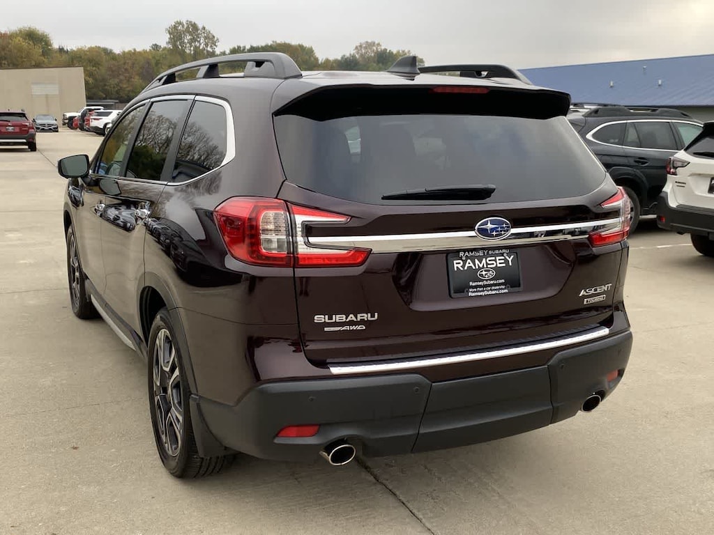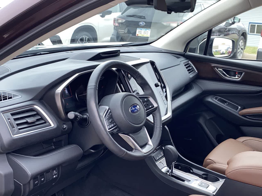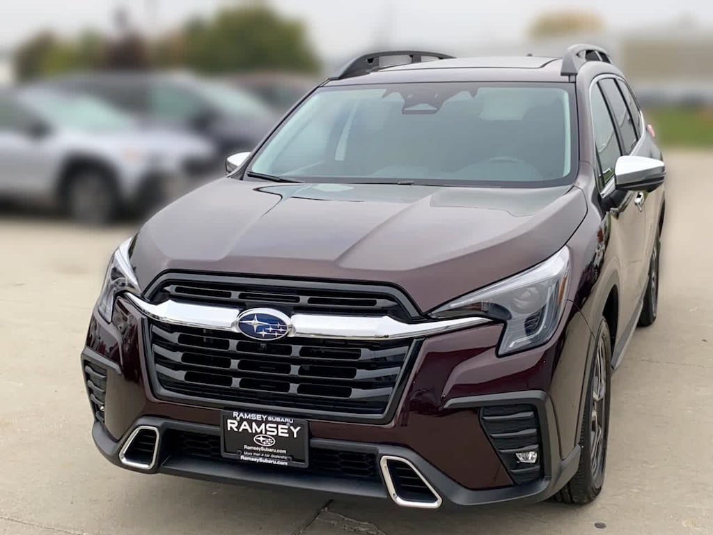 Ascent Touring is nicely equipped with Standard Model, Subaru Certified Pre-Owned Certified, 14 Speakers, 3rd row seats: bench, 4-Wheel Disc Brakes, ABS brakes, Air Conditioning, Alloy wheels, AM/FM radio: SiriusXM, Auto High-beam Headlights, Auto-dimming Rear-View mirror, Automatic temperature control, Axle Ratio: 4.44, Brake assist, Bumpers: body-color, Compass, Delay-off headlights, Driver door bin, Driver vanity mirror, Dual front impact airbags, Dual front side impact airbags, Electronic Stability Control, Emergency communication system: STARLINK Safety and Security (Subscription Required), Four wheel independent suspension, Front anti-roll bar, Front Bucket Seats, Front Center Armrest, Front dual zone A/C, Front fog lights, Front reading lights, Fully automatic headlights, Garage door transmitter: HomeLink, harman/kardonî Speakers, Heated & Ventilated Front Bucket Seats, Heated door mirrors, Heated front seats, Heated rear seats, Heated steering wheel, HVAC memory, Illuminated entry, Knee airbag, Leather Shift Knob, Leather steering wheel, Low tire pressure warning, Memory seat, Navigation System, Occupant sensing airbag, Outside temperature display, Overhead airbag, Overhead console, Panic alarm, Passenger door bin, Passenger vanity mirror, Perforated Nappa Leather-Trimmed Upholstery, Power door mirrors, Power driver seat, Power Liftgate, Power moonroof, Power passenger seat, Power steering, Power windows, Radio data system, Radio: Subaru STARLINK 11.6 Multimedia Nav System, Rain sensing wipers, Rear air conditioning, Rear anti-roll bar, Rear reading lights, Rear window defroster, Rear window wiper, Reclining 3rd row seat, Remote keyless entry, Security system, Speed control, Speed-sensing steering, Split folding rear seat, Spoiler, STARLINK/Apple CarPlay/Android Auto, Steering wheel mounted audio controls, Tachometer, Telescoping steering wheel, Tilt steering wheel, Traction control, Trip computer, Turn signal indicator mirrors, Variably intermittent wipers, Ventilated front seats, and Wheels: 20 x 7.5 J Dk Gray Alloy w/Machine Finish.