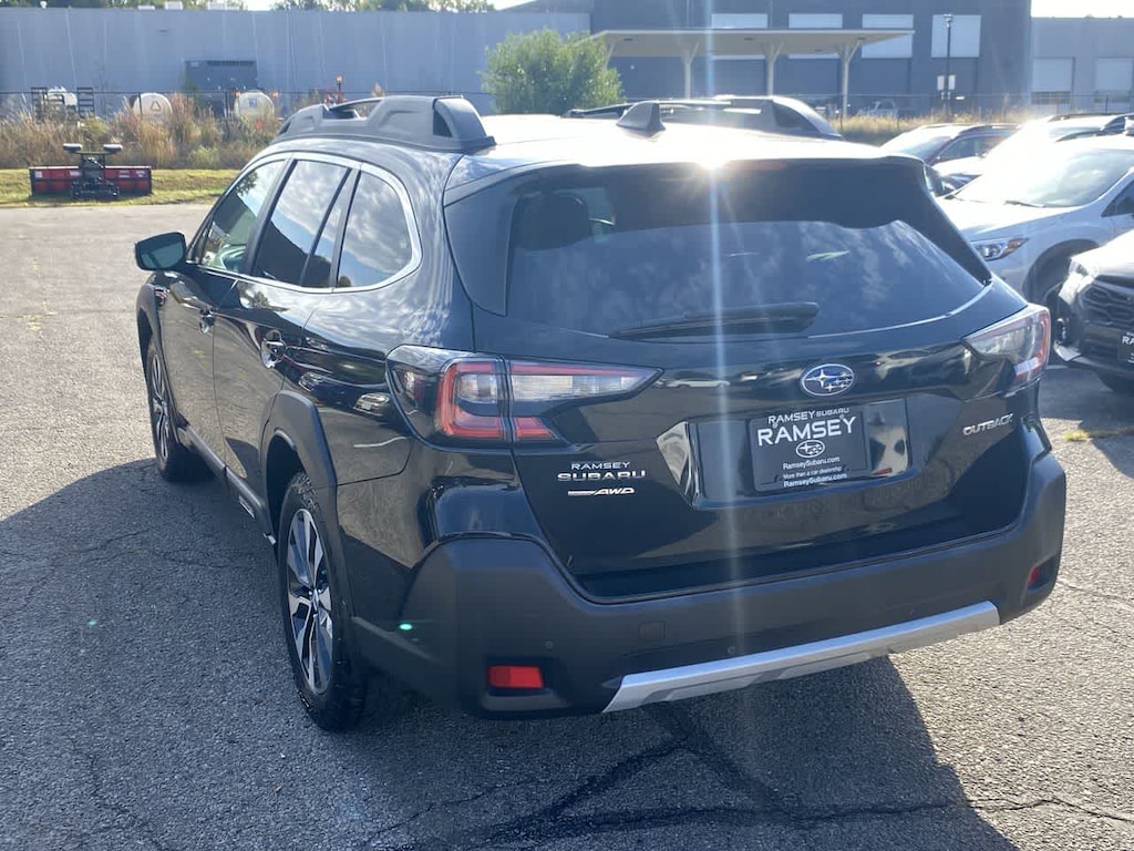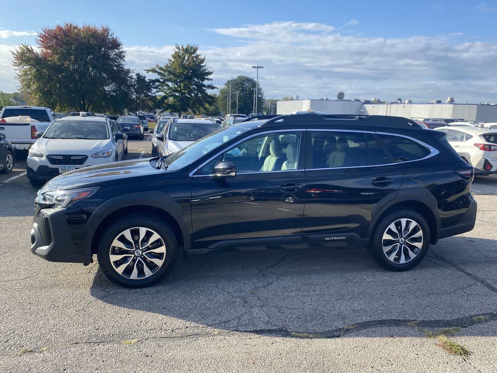 Outback Limited is nicely equipped with Standard Model, 12 Speakers, 3.90 Axle Ratio, 4-Wheel Disc Brakes, ABS brakes, Air Conditioning, All-Weather Floor Liners, Alloy wheels, AM/FM radio: SiriusXM, Auto High-beam Headlights, Auto-Dimming Exterior Mirror w/Approach Light, Auto-dimming Rear-View mirror, Automatic temperature control, Brake assist, Bumpers: body-color, Compass, Driver door bin, Driver vanity mirror, Dual front impact airbags, Dual front side impact airbags, Electronic Stability Control, Emergency communication system: STARLINK Safety Plus (3-year free trial), Exterior Parking Camera Rear, Four wheel independent suspension, Front anti-roll bar, Front Bucket Seats, Front Center Armrest w/Storage, Front dual zone A/C, Front fog lights, Front reading lights, Fully automatic headlights, Garage door transmitter: HomeLink, harman/kardonî Speakers, Heated door mirrors, Heated Front Bucket Seats, Heated front seats, Heated rear seats, Illuminated entry, Knee airbag, Leather Shift Knob, Leather steering wheel, Low tire pressure warning, Memory seat, Occupant sensing airbag, Outside temperature display, Overhead airbag, Overhead console, Panic alarm, Passenger door bin, Passenger vanity mirror, Perforated Leather-Trimmed Upholstery, Power door mirrors, Power driver seat, Power Liftgate, Power passenger seat, Power steering, Power windows, Radio: Subaru STARLINK 11.6 Multimedia Plus Sys, Rear anti-roll bar, Rear seat center armrest, Rear window defroster, Rear window wiper, Remote keyless entry, Roof rack, Security system, Speed control, Speed-sensing steering, Splash Guards, Split folding rear seat, Spoiler, Steering wheel mounted audio controls, Steering Wheel Paddle Shift Control Switches, Tachometer, Telescoping steering wheel, Tilt steering wheel, Traction control, Trip computer, Turn signal indicator mirrors, Variably intermittent wipers, Wheels: 18 x 7J Black Aluminum Alloy, and Wireless Charger.