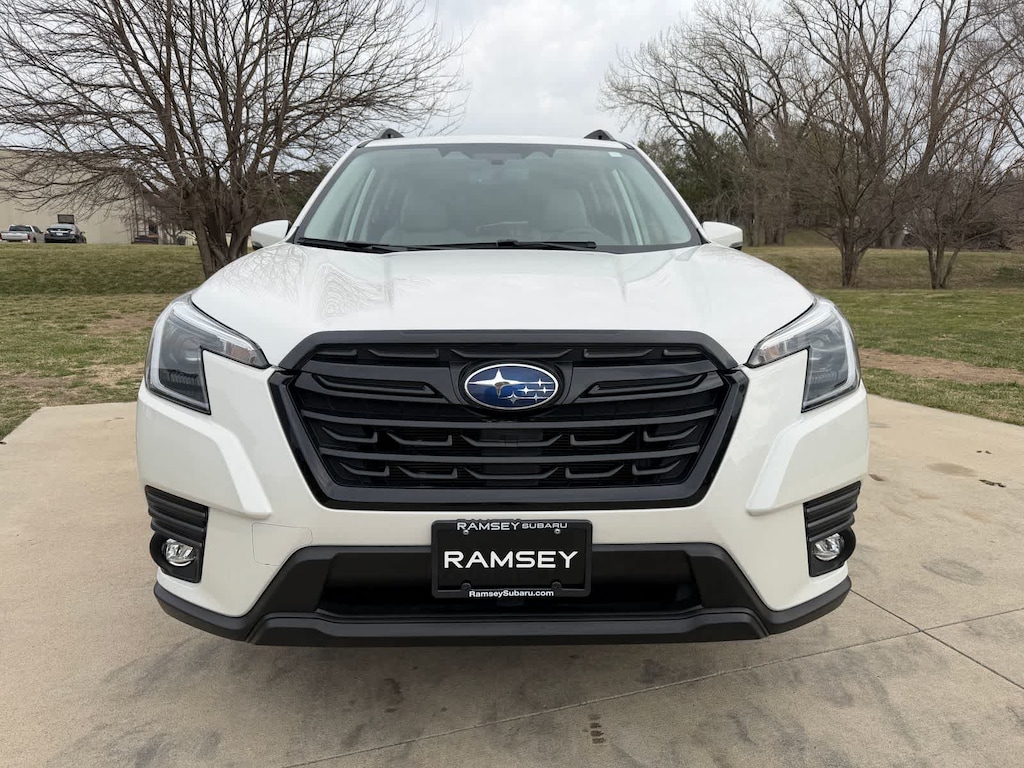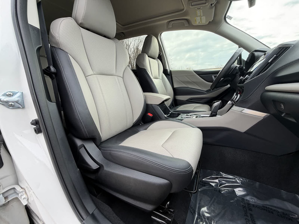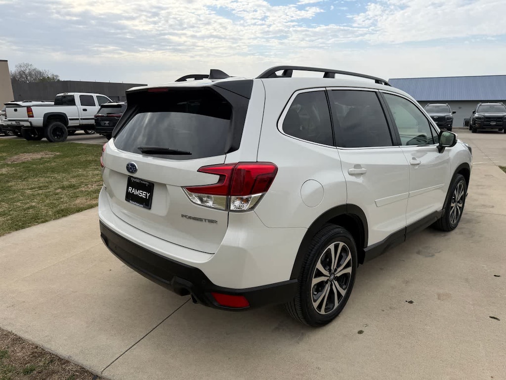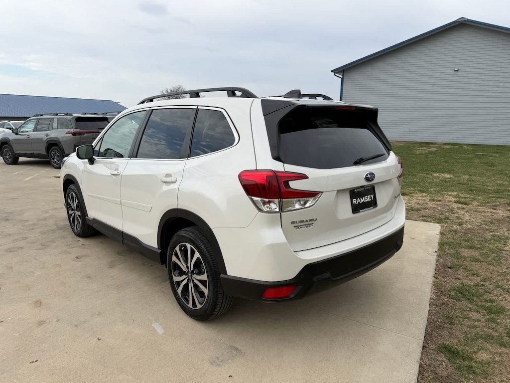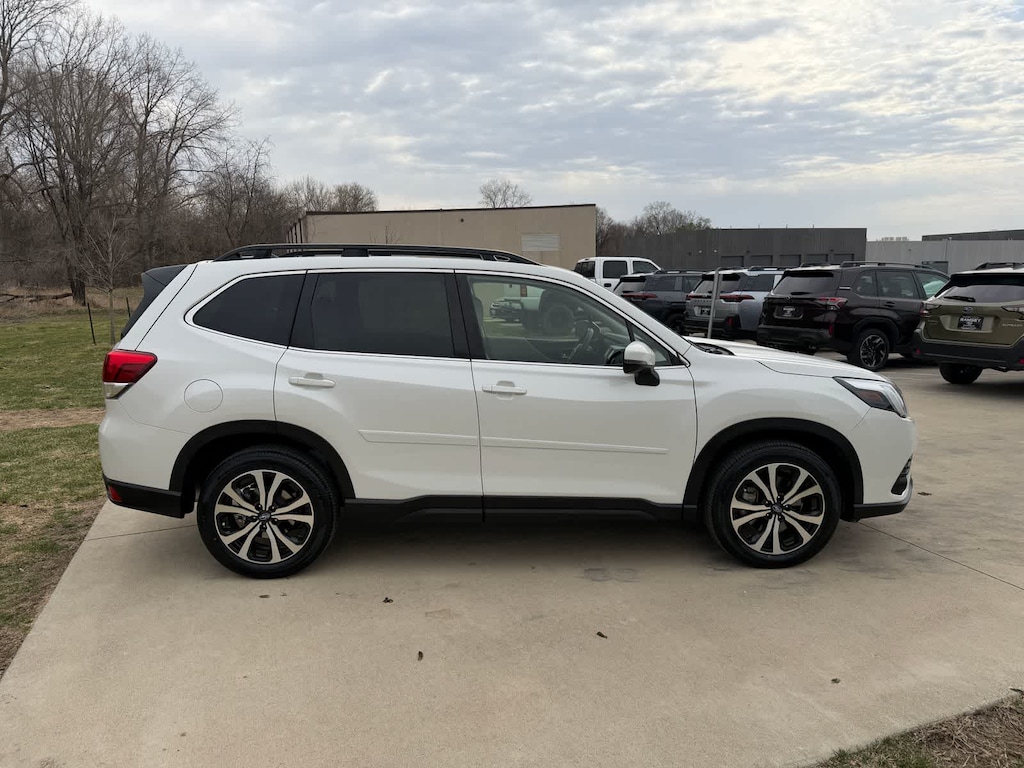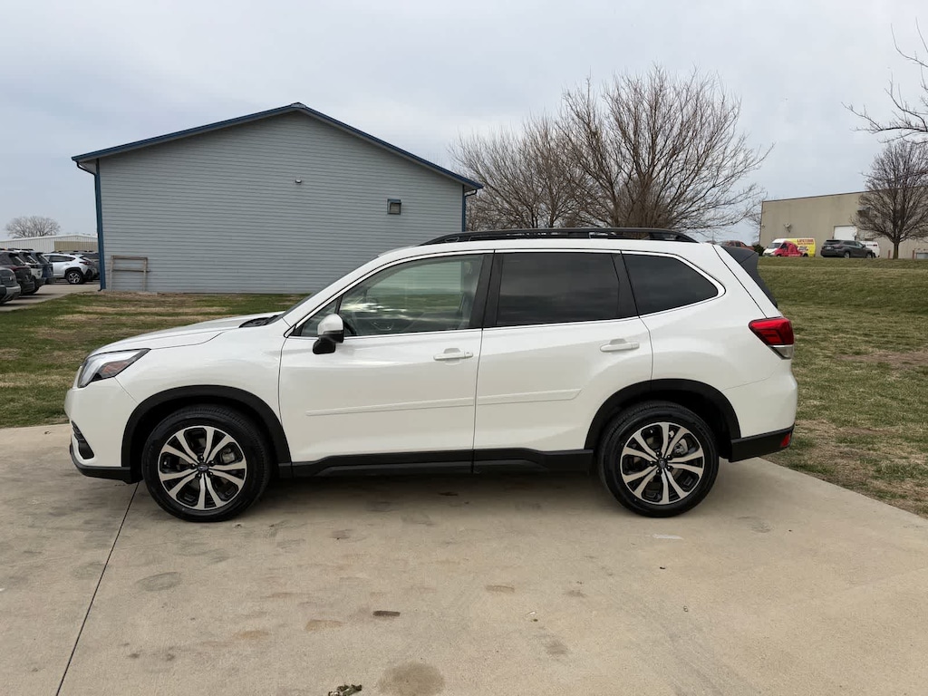 Forester Limited is nicely equipped with Nav & harman/kardon & RAB & Heated Steering Wheel (Heated Steering Wheel, Radio: Subaru STARLINK 8.0 Multimedia Nav System, Reverse Automatic Braking System (RAB), and harman/kardon 9-Speaker Audio System), Subaru Certified Pre-Owned Certified, 3.70 Axle Ratio, 4-Wheel Disc Brakes, 6 Speakers, ABS brakes, Air Conditioning, All-Weather Floor Liners, Alloy wheels, AM/FM radio: SiriusXM, Anti-whiplash front head restraints, Auto High-beam Headlights, Auto-Dimming Exterior Mirror w/Approach Light, Auto-Dimming Mirror w/Compass & HomeLink, Automatic temperature control, Body Side Molding - Crystal White Pearl, Brake assist, Bumpers: body-color, Cargo Net, Driver door bin, Driver vanity mirror, Dual front impact airbags, Dual front side impact airbags, Electronic Stability Control, Emergency communication system: STARLINK Safety and Security (Subscription Required), Exterior Parking Camera Rear, Four wheel independent suspension, Front anti-roll bar, Front Bucket Seats, Front Center Armrest, Front dual zone A/C, Front fog lights, Front reading lights, Fully automatic headlights, Heated door mirrors, Heated Front Bucket Seats, Heated front seats, Illuminated entry, Knee airbag, Leather Shift Knob, Leather steering wheel, LED Upgrade, Low tire pressure warning, Navigation System, Occupant sensing airbag, Outside temperature display, Overhead airbag, Overhead console, Panic alarm, Passenger door bin, Passenger vanity mirror, Perforated Leather-Trimmed Upholstery, Power door mirrors, Power driver seat, Power Liftgate, Power moonroof: Panoramic, Power steering, Power windows, Radio data system, Radio: Subaru STARLINK 8.0 Multimedia Plus System, Rear anti-roll bar, Rear seat center armrest, Rear window defroster, Rear window wiper, Remote keyless entry, Roof rack: rails only, Security system, Speed control, Speed-sensing steering, Split folding rear seat, Spoiler, STARLINK/Apple CarPlay/Android Auto, Steering wheel mounted audio controls, Tachometer, Telescoping steering wheel, Tilt steering wheel, Traction control, Trip computer, Turn signal indicator mirrors, Variably intermittent wipers, and Wheels: 18 x 7.0 J Black Machine Finish Alloy.