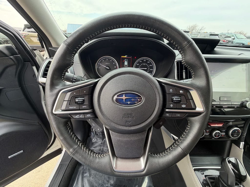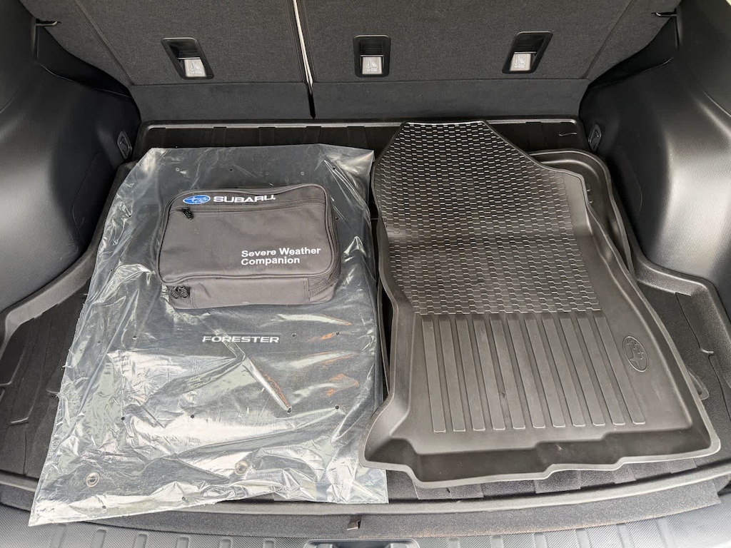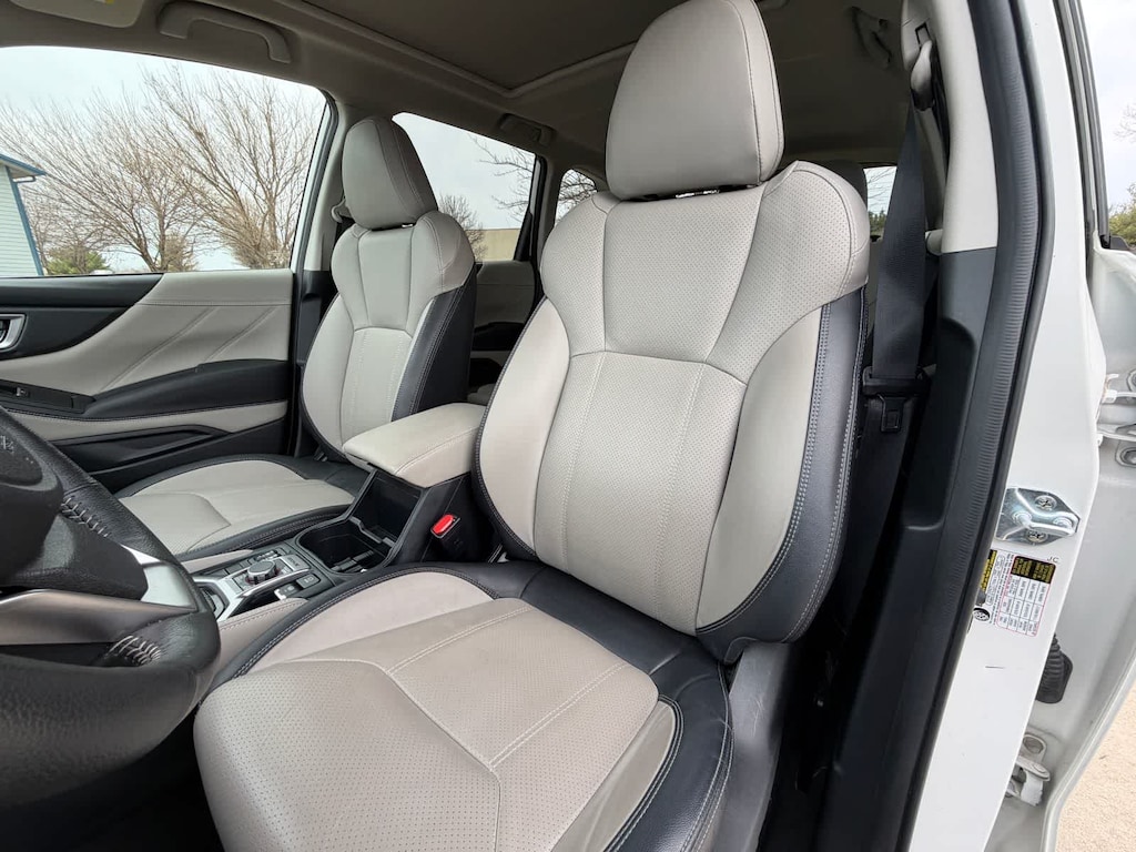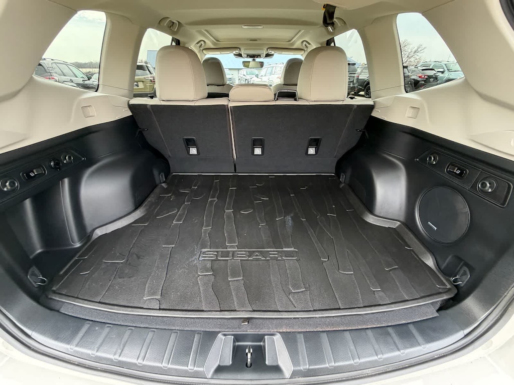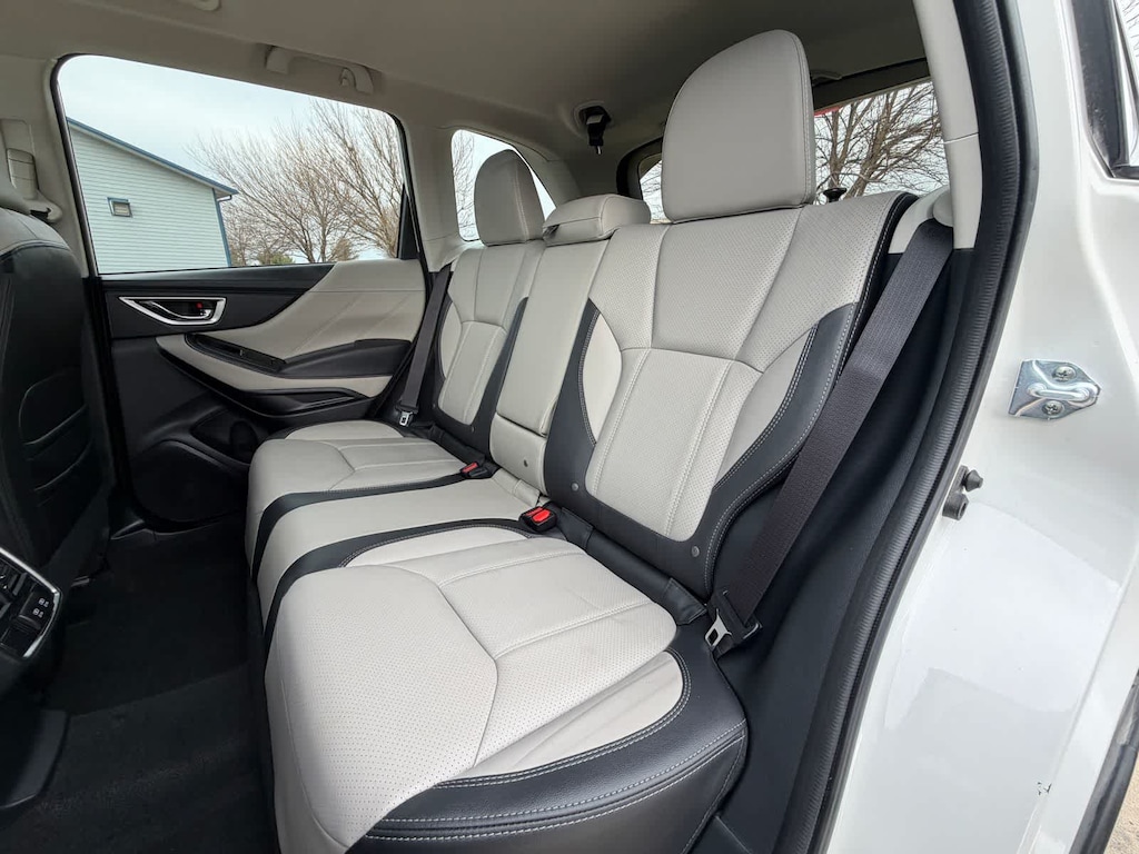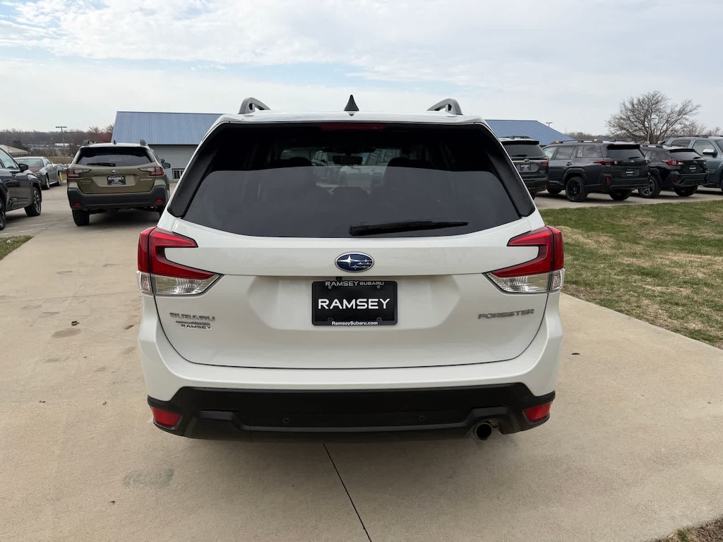 Forester Limited is nicely equipped with Nav & harman/kardon & RAB & Heated Steering Wheel (Heated Steering Wheel, Radio: Subaru STARLINK 8.0 Multimedia Nav System, Reverse Automatic Braking System (RAB), and harman/kardon 9-Speaker Audio System), Subaru Certified Pre-Owned Certified, 3.70 Axle Ratio, 4-Wheel Disc Brakes, 6 Speakers, ABS brakes, Air Conditioning, All-Weather Floor Liners, Alloy wheels, AM/FM radio: SiriusXM, Anti-whiplash front head restraints, Auto High-beam Headlights, Auto-Dimming Exterior Mirror w/Approach Light, Auto-Dimming Mirror w/Compass & HomeLink, Automatic temperature control, Body Side Molding - Crystal White Pearl, Brake assist, Bumpers: body-color, Cargo Net, Driver door bin, Driver vanity mirror, Dual front impact airbags, Dual front side impact airbags, Electronic Stability Control, Emergency communication system: STARLINK Safety and Security (Subscription Required), Exterior Parking Camera Rear, Four wheel independent suspension, Front anti-roll bar, Front Bucket Seats, Front Center Armrest, Front dual zone A/C, Front fog lights, Front reading lights, Fully automatic headlights, Heated door mirrors, Heated Front Bucket Seats, Heated front seats, Illuminated entry, Knee airbag, Leather Shift Knob, Leather steering wheel, LED Upgrade, Low tire pressure warning, Navigation System, Occupant sensing airbag, Outside temperature display, Overhead airbag, Overhead console, Panic alarm, Passenger door bin, Passenger vanity mirror, Perforated Leather-Trimmed Upholstery, Power door mirrors, Power driver seat, Power Liftgate, Power moonroof: Panoramic, Power steering, Power windows, Radio data system, Radio: Subaru STARLINK 8.0 Multimedia Plus System, Rear anti-roll bar, Rear seat center armrest, Rear window defroster, Rear window wiper, Remote keyless entry, Roof rack: rails only, Security system, Speed control, Speed-sensing steering, Split folding rear seat, Spoiler, STARLINK/Apple CarPlay/Android Auto, Steering wheel mounted audio controls, Tachometer, Telescoping steering wheel, Tilt steering wheel, Traction control, Trip computer, Turn signal indicator mirrors, Variably intermittent wipers, and Wheels: 18 x 7.0 J Black Machine Finish Alloy.