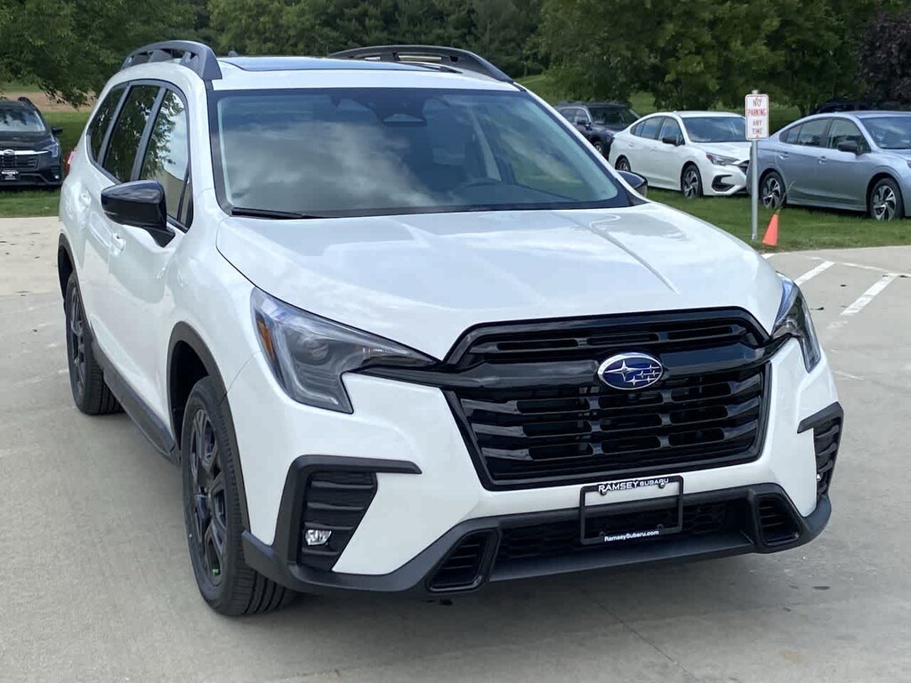 Ascent Onyx Edition Touring is nicely equipped with Standard Model, 14 Speakers, 3rd row seats: bench, 4-Wheel Disc Brakes, ABS brakes, Air Conditioning, Alloy wheels, AM/FM radio: SiriusXM with 360L, Apple CarPlay & Android Auto, Auto High-beam Headlights, Auto-Dimming Exterior Mirror w/Approach Light, Auto-dimming Rear-View mirror, Automatic temperature control, Brake assist, Bumpers: body-color, Compass, Delay-off headlights, Driver door bin, Driver vanity mirror, Dual front impact airbags, Dual front side impact airbags, Electronic Stability Control, Emergency communication system: MySubaru Safety (3-year free trial), Exterior Parking Camera Rear, Four wheel independent suspension, Front anti-roll bar, Front Bucket Seats, Front Center Armrest, Front dual zone A/C, Front fog lights, Front reading lights, Fully automatic headlights, Garage door transmitter: HomeLink, harman/kardonî Speakers, Heated & Ventilated Front Bucket Seats, Heated door mirrors, Heated front seats, Heated rear seats, Heated steering wheel, HVAC memory, Illuminated entry, Knee airbag, Leather Shift Knob, Leather steering wheel, Low tire pressure warning, Memory seat, Navigation System, Occupant sensing airbag, Outside temperature display, Overhead airbag, Overhead console, Panic alarm, Passenger door bin, Passenger vanity mirror, Perforated Nappa Leather-Trimmed Upholstery, Power door mirrors, Power driver seat, Power Liftgate, Power moonroof, Power passenger seat, Power steering, Power windows, Radio data system, Radio: Subaru 11.6 Multimedia System w/Navigation, Rain sensing wipers, Rear air conditioning, Rear anti-roll bar, Rear reading lights, Rear window defroster, Rear window wiper, Reclining 3rd row seat, Remote keyless entry, Security system, Speed control, Speed-sensing steering, Split folding rear seat, Spoiler, Steering wheel mounted audio controls, Tachometer, Telescoping steering wheel, Tilt steering wheel, Traction control, Trailer Hitch, Trip computer, Turn signal indicator mirrors, Variably intermittent wipers, Ventilated front seats, Wheels: 20 x 7.5 J Aluminum Alloy w/Black Finish, and Wireless Charger.