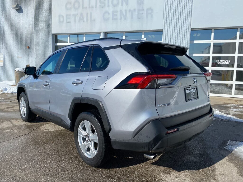 RAV4 XLE is nicely equipped with AWD, Black Cloth, 4-Wheel Disc Brakes, 6 Speakers, ABS brakes, Air Conditioning, Alloy wheels, AM/FM radio: SiriusXM, AM/FM Stereo, Apple CarPlay/Android Auto, Auto High-beam Headlights, Automatic temperature control, Axle Ratio: 3.177, Brake assist, Bumpers: body-color, Delay-off headlights, Driver door bin, Driver vanity mirror, Dual front impact airbags, Dual front side impact airbags, Electronic Stability Control, Emergency communication system, Exterior Parking Camera Rear, Fabric Seat Trim, Four wheel independent suspension, Front anti-roll bar, Front Bucket Seats, Front Center Armrest, Front dual zone A/C, Front fog lights, Front reading lights, Fully automatic headlights, Heated door mirrors, Illuminated entry, Knee airbag, Low tire pressure warning, Occupant sensing airbag, Outside temperature display, Overhead airbag, Overhead console, Panic alarm, Passenger door bin, Passenger vanity mirror, Power door mirrors, Power driver seat, Power steering, Power windows, Radio data system, Rear anti-roll bar, Rear seat center armrest, Rear window defroster, Rear window wiper, Remote keyless entry, Roof rack: rails only, Speed control, Speed-sensing steering, Split folding rear seat, Spoiler, Steering wheel mounted audio controls, Tachometer, Telescoping steering wheel, Tilt steering wheel, Traction control, Trip computer, Turn signal indicator mirrors, Variably intermittent wipers, and Wheels: 17 5-Spoke Silver Alloy.