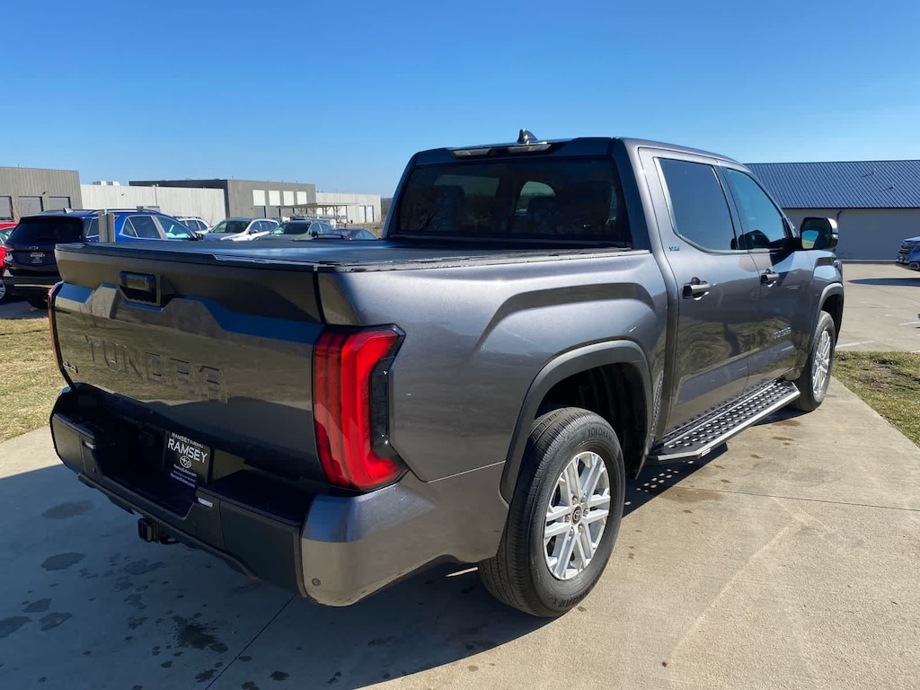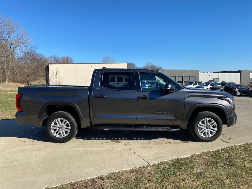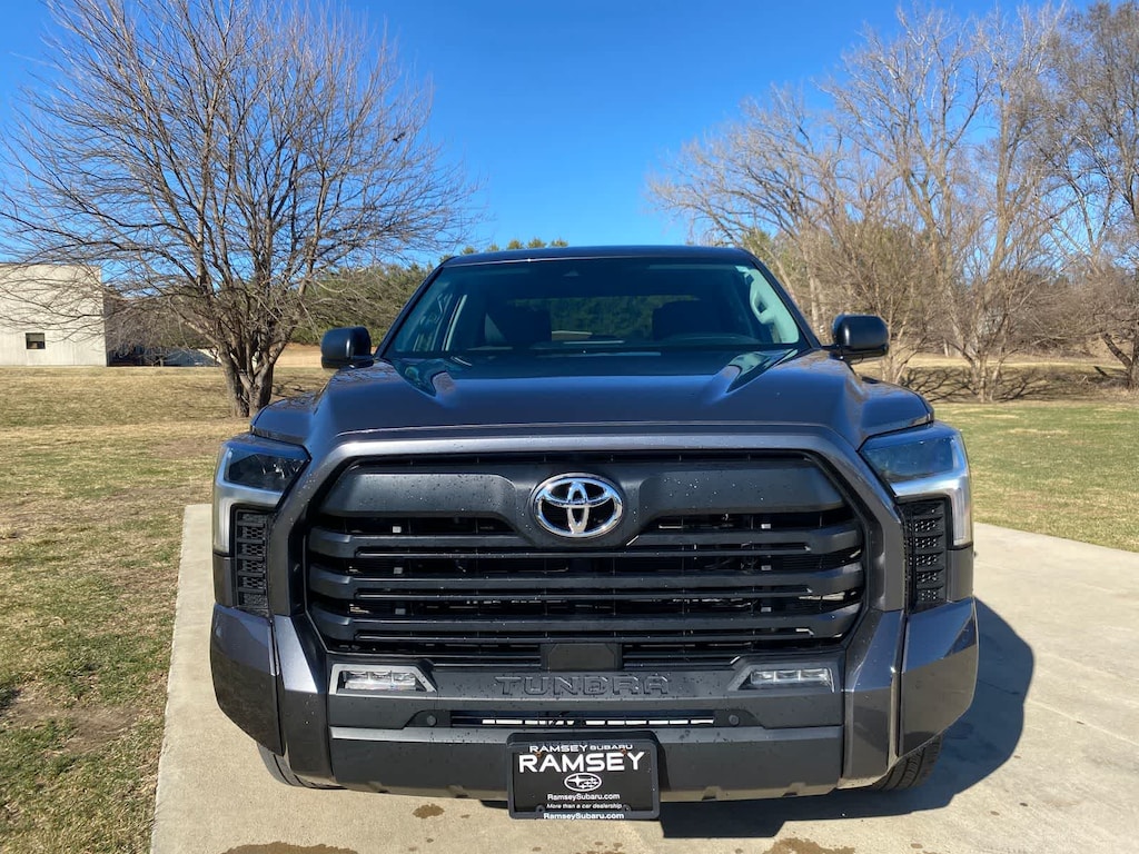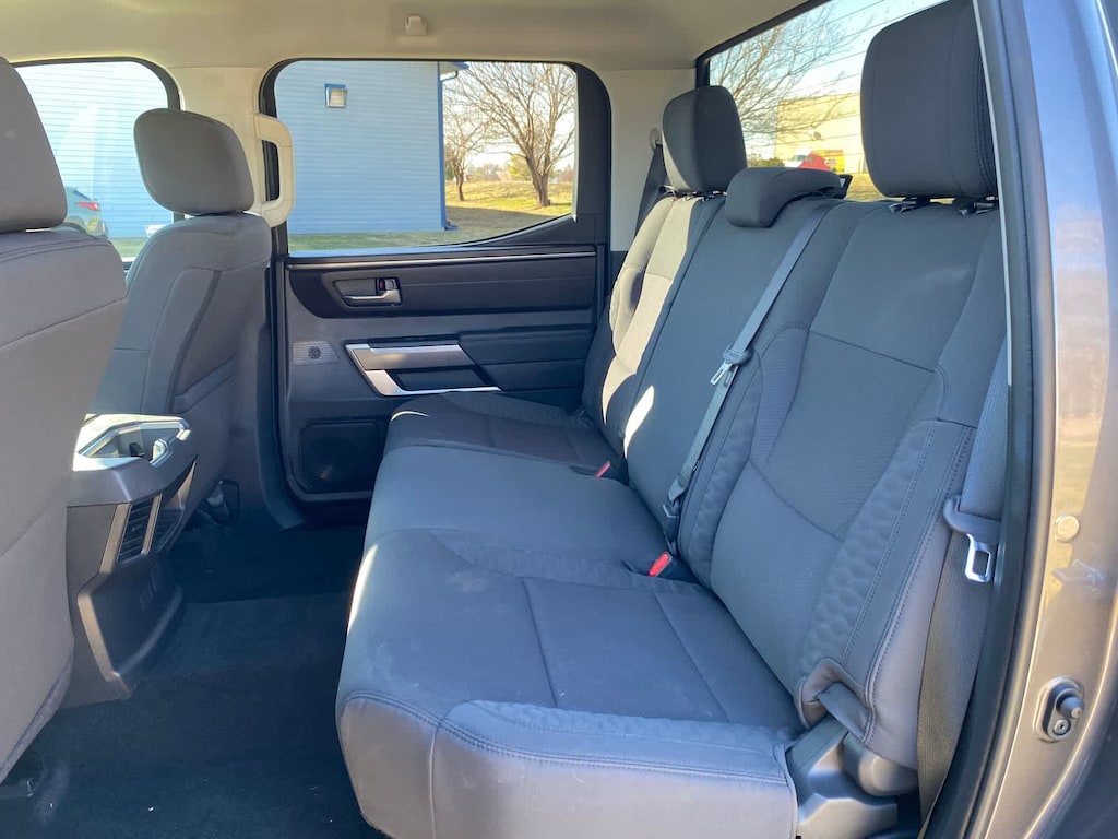 Tundra SR5 is nicely equipped with SR5 Convenience Package (32 Gallon Fuel Tank, Blind Spot Monitor w/Lane Change Assist, and Parking Support Alert/Brake), 4WD, Black Cloth, 18 Alloy Wheels, 3.31 Axle Ratio, 4-Way Adjustable Front Bucket Seats, 4-Wheel Disc Brakes, 9 Speakers, ABS brakes, Air Conditioning, Alloy wheels, AM/FM radio: SiriusXM, Apple CarPlay/Android Auto, Auto High-beam Headlights, Automatic temperature control, Brake assist, Bumpers: body-color, Delay-off headlights, Driver door bin, Driver vanity mirror, Dual front impact airbags, Dual front side impact airbags, Electronic Stability Control, Emergency communication system: Safety Connect (10-year trial), Exterior Parking Camera Rear, Fabric Seat Trim (FB), Front anti-roll bar, Front Bucket Seats, Front Center Armrest, Front fog lights, Front reading lights, Front wheel independent suspension, Fully automatic headlights, Heated door mirrors, Illuminated entry, Knee airbag, Low tire pressure warning, Occupant sensing airbag, Outside temperature display, Overhead airbag, Overhead console, Panic alarm, Passenger door bin, Passenger vanity mirror, Power door mirrors, Power steering, Power windows, Radio data system, Radio: Audio Multimedia System, Rear reading lights, Rear step bumper, Rear window defroster, Remote keyless entry, Safety Connect, Security system, Speed control, Speed-sensing steering, Split folding rear seat, Steering wheel mounted audio controls, Tachometer, Telescoping steering wheel, Tilt steering wheel, Traction control, Trip computer, Variably intermittent wipers, and Voltmeter.